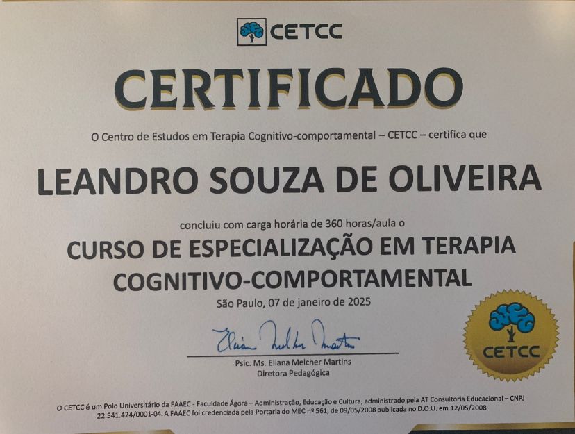 Estou muito satisfeito com o atendimento. O Leandro demonstra atenção, escuta ativa e profissionalismo. As sessões têm sido produtivas e sinto que estou avançando no meu processo de desenvolvimento pessoal.