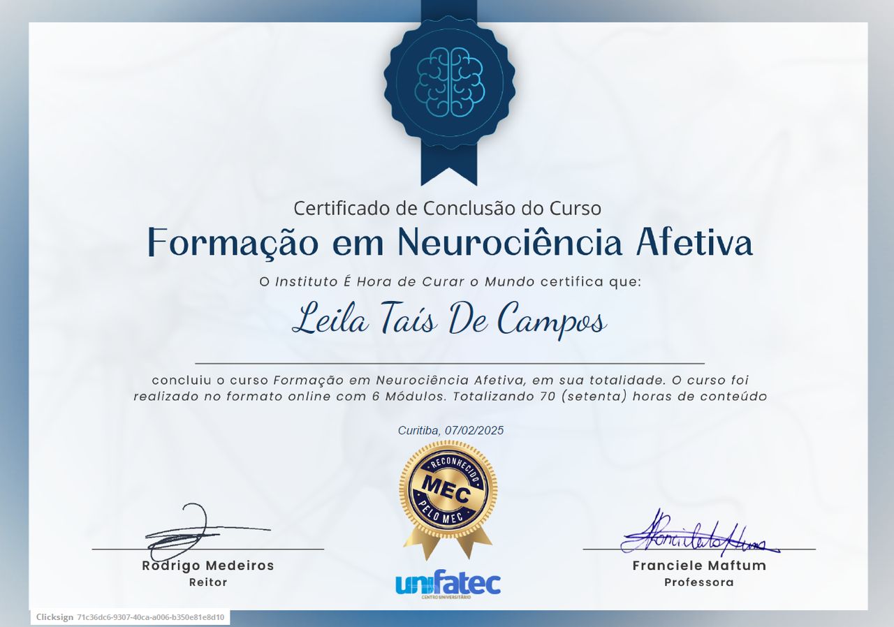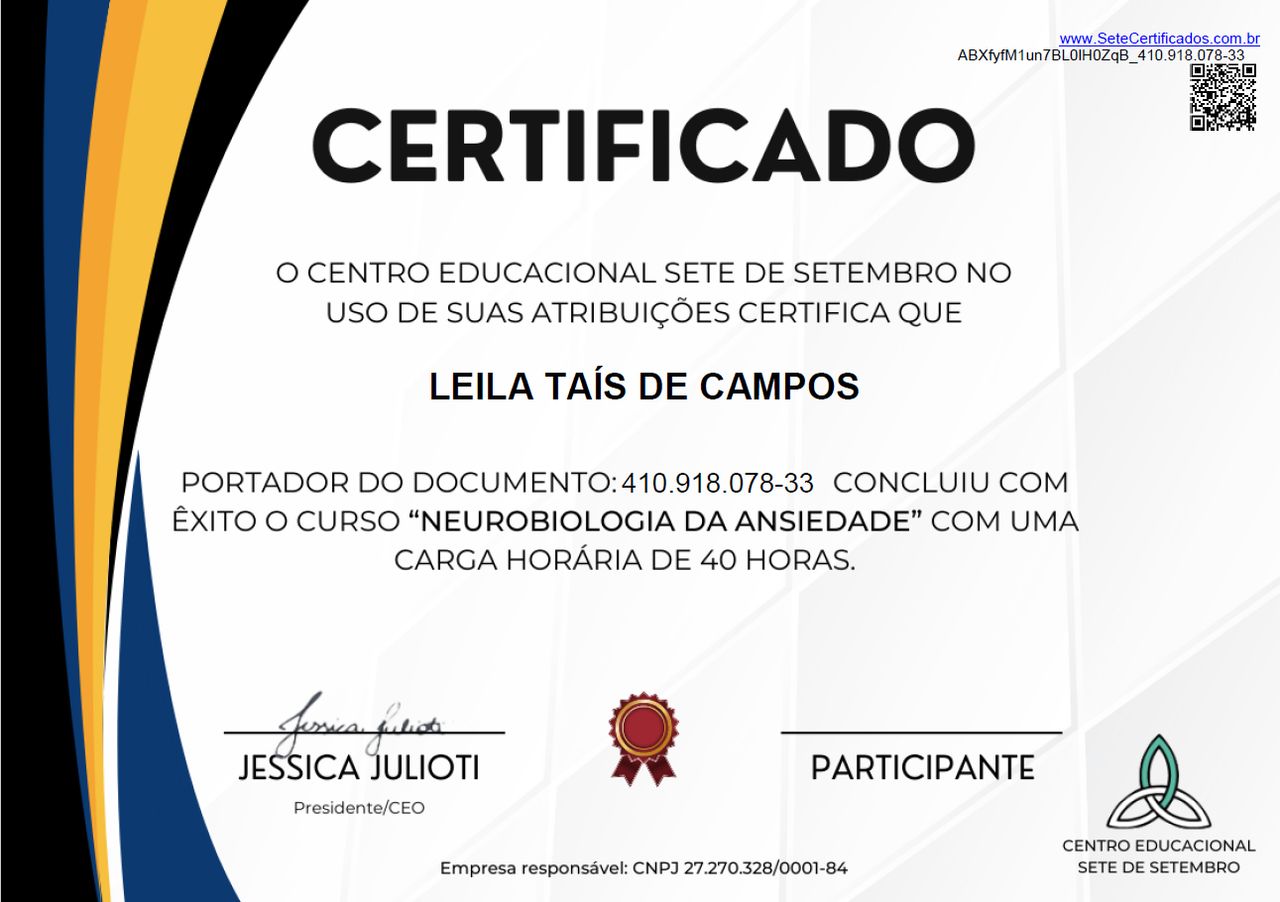 Sou Terapeuta Integrativa, com formação em Psicanálise Clínica, especialista em Neurociência e Física da consciência, pós-graduada em Aromaterapia e praticante da Filosofia Oriental. Após anos de estudo e prática clínica desenvolvi a abordagem Neurocientífica integrada à Filosofia Oriental, através da conexão entre conhecimentos milenares e as descobertas mais recentes da ciência eu te mostro como você acalmar a sua mente para viver com mais leveza e menos ansiedade. Atendimento presencial (Taquarituba - SP) e online para qualquer lugar do mundo.