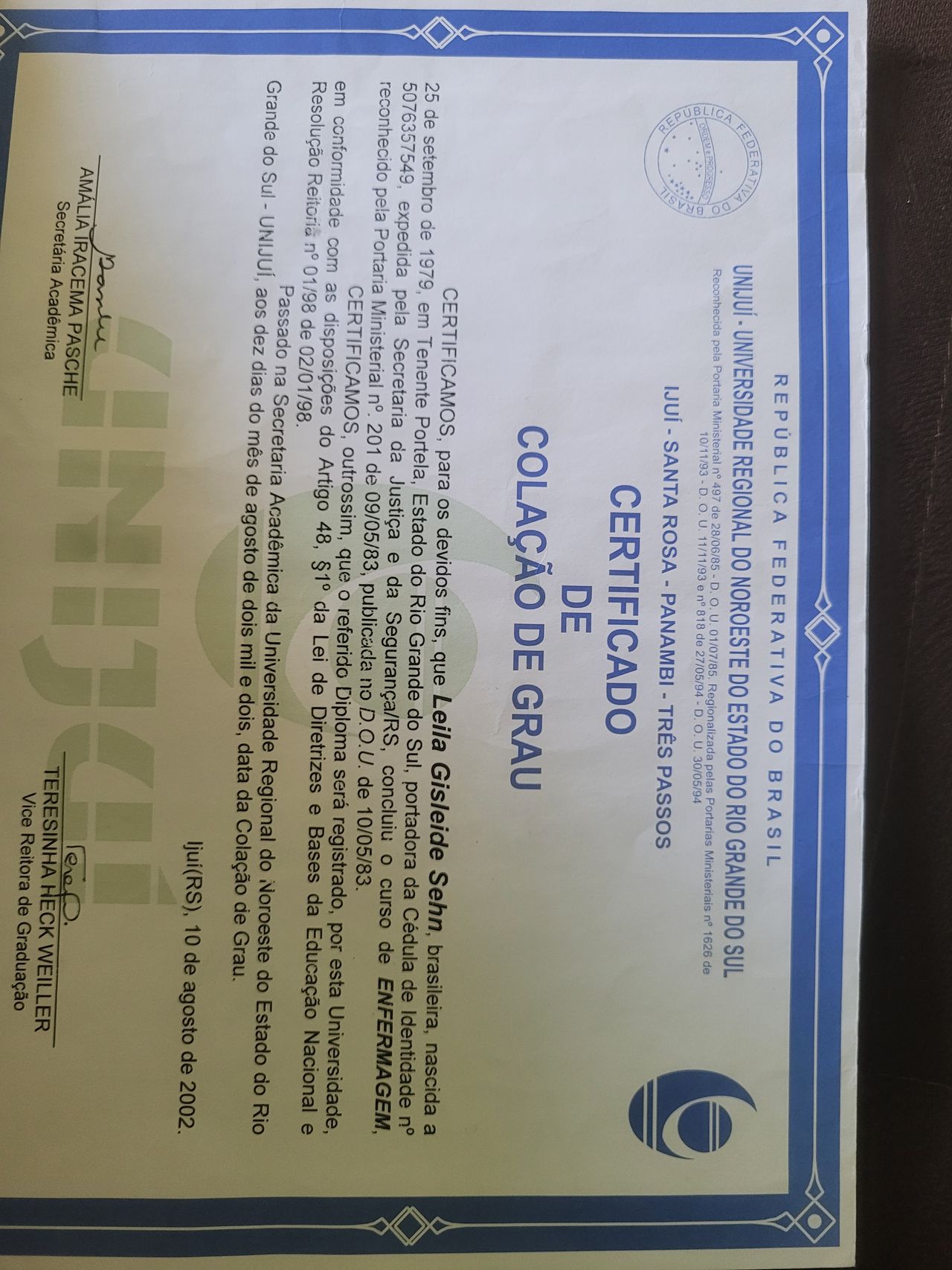 Olá, meu nome é Leila G. Sehn tenho 46 anos, sou enfermeira com cuidado integral à saúde e Consteladora Sistêmica e Familiar, resido no município de Ijuí /RS.