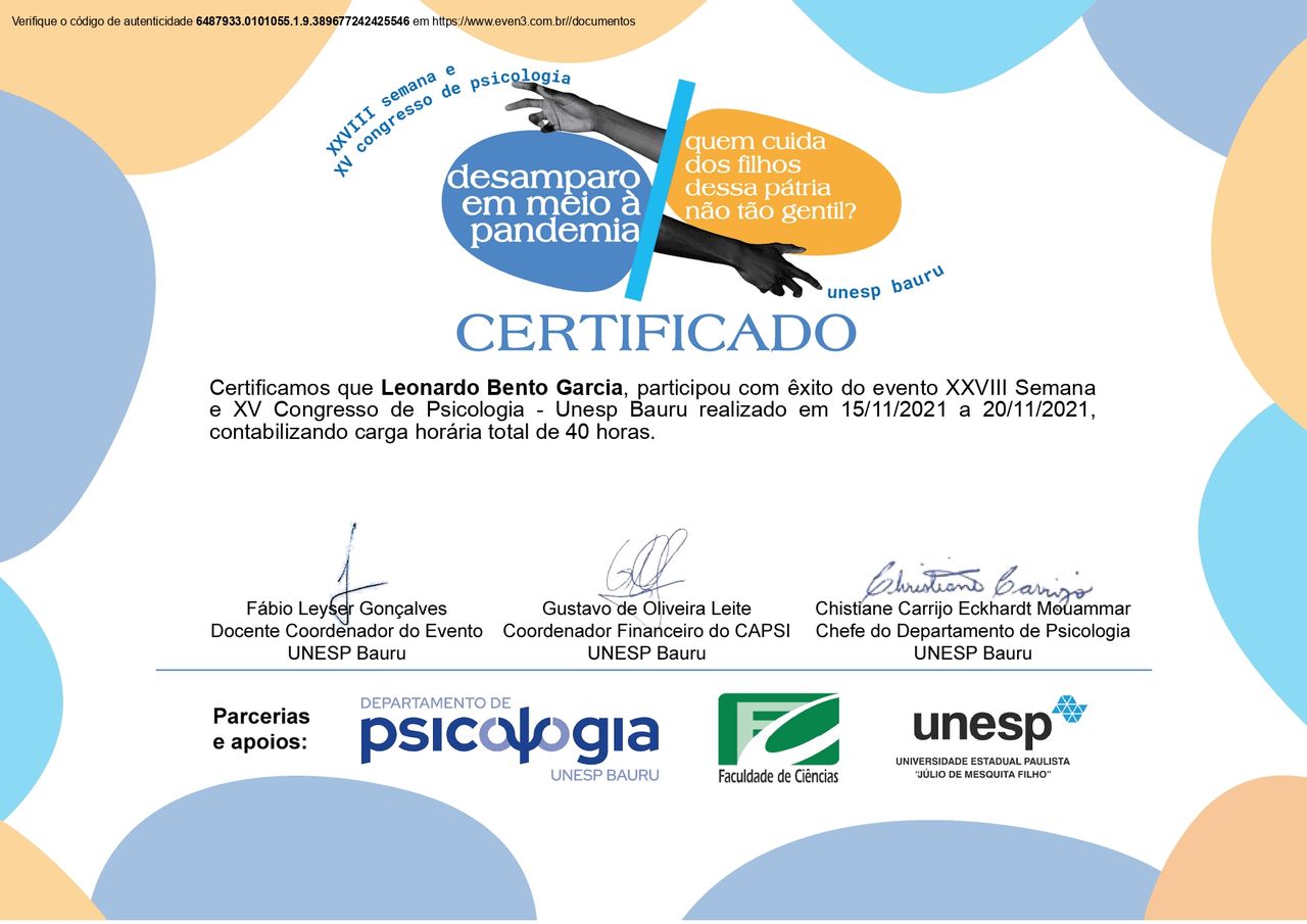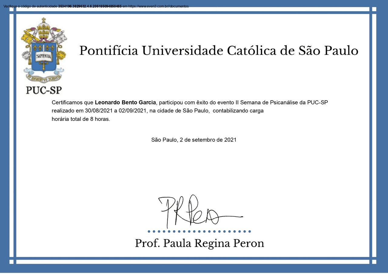 Olá! Sou psicólogo e psicanalista, graduado pela Universidade Estadual Paulista “Júlio de Mesquita Filho” (UNESP – Bauru), com experiência em Psicologia Clínica e Psicanálise de orientação lacaniana. Atuei como membro do Fórum do Campo Lacaniano do ABC Paulista.
