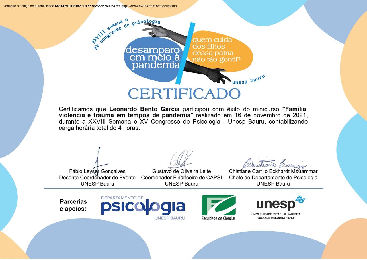 Ao longo da minha trajetória profissional, participei de grupos de estudo, projetos de extensão e atividades de pesquisa voltados à Psicanálise, com ênfase em temas como o atendimento a pessoas transgênero, os efeitos da cultura digital sobre a saúde mental e os estudos sobre a masculinidade contemporânea. Atuei como clínico no projeto E-care – Rede Virtual Multiprofissional de Apoio à Saúde da UNESP –, com foco em casos pós-Covid e síndromes metabólicas. Além disso, realizei atendimentos na Clínica Psicanalítica com Adultos do Centro de Psicologia Aplicada da UNESP, onde aprofundei minha prática clínica.