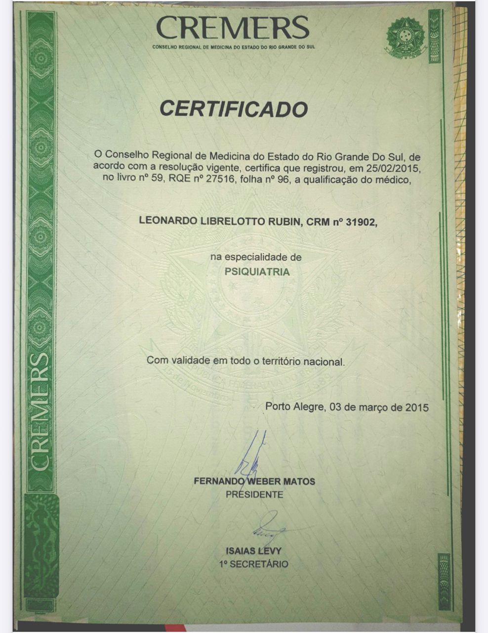 Número de registro: CRM 31902 RQE 27516