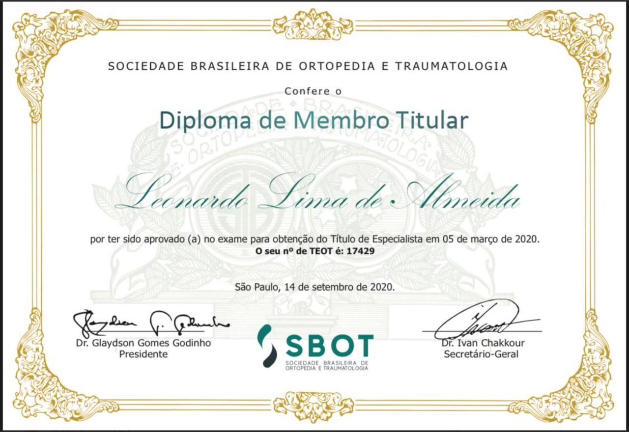 Membro Titular da Sociedade Brasileira de Ortopedia e Traumatologia (SBOT)