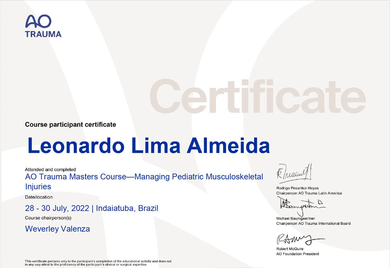 Membro Titular da Sociedade Brasileira de Ortopedia Pediátrica (SBOP)