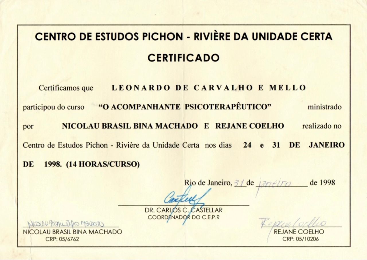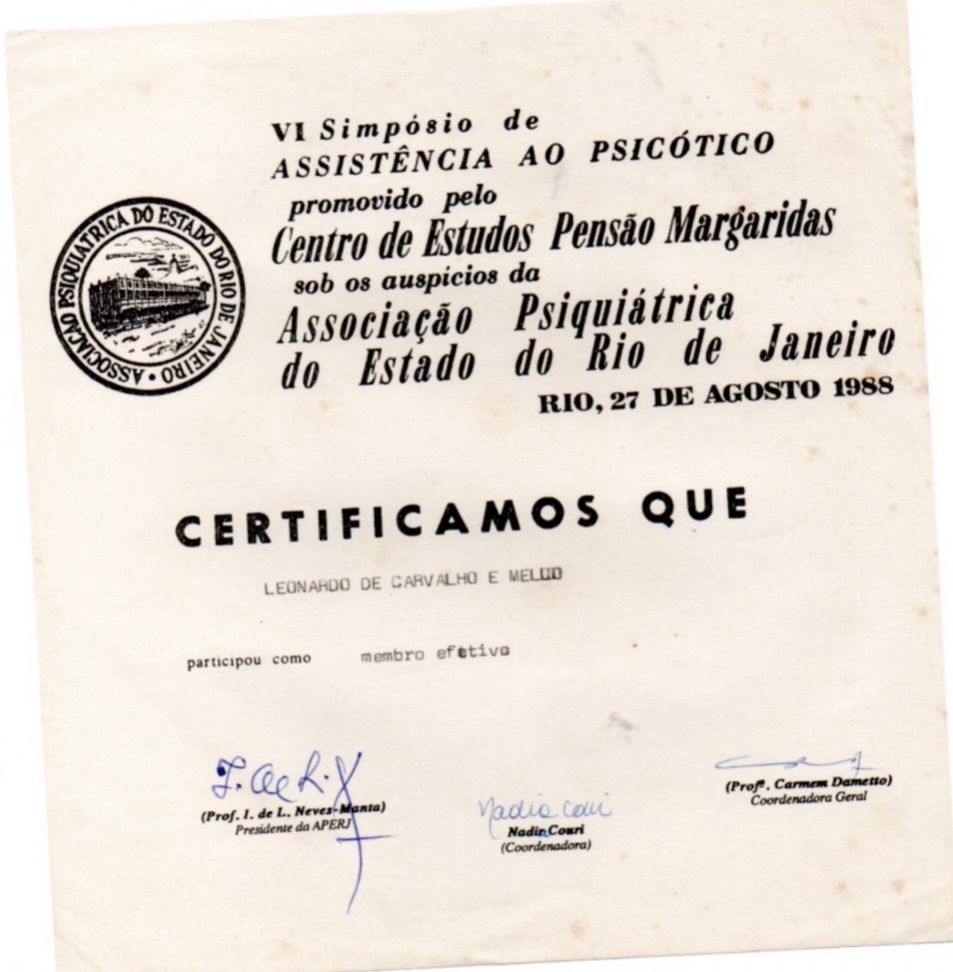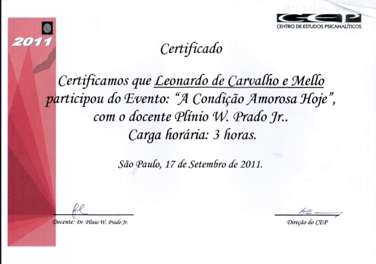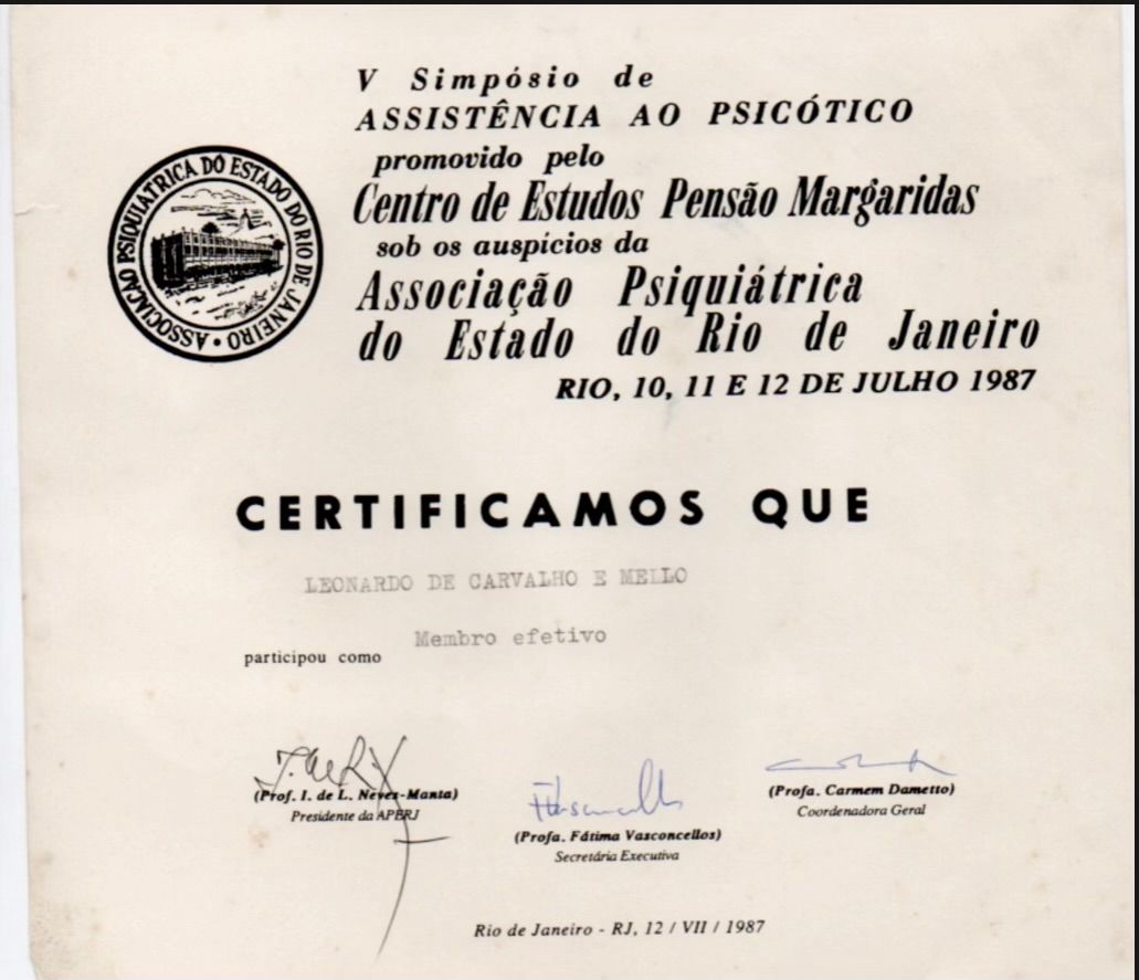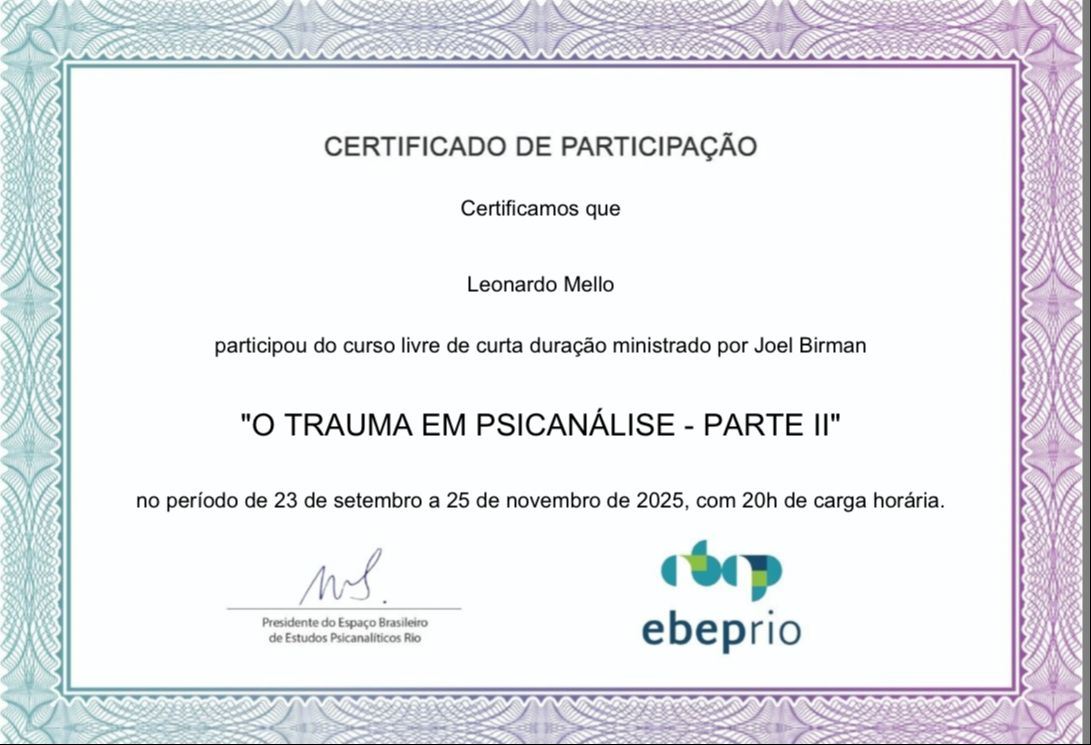 Membro associado da Sociedade de Psicanálise da Cidade do Rio de Janeiro SPCRJ