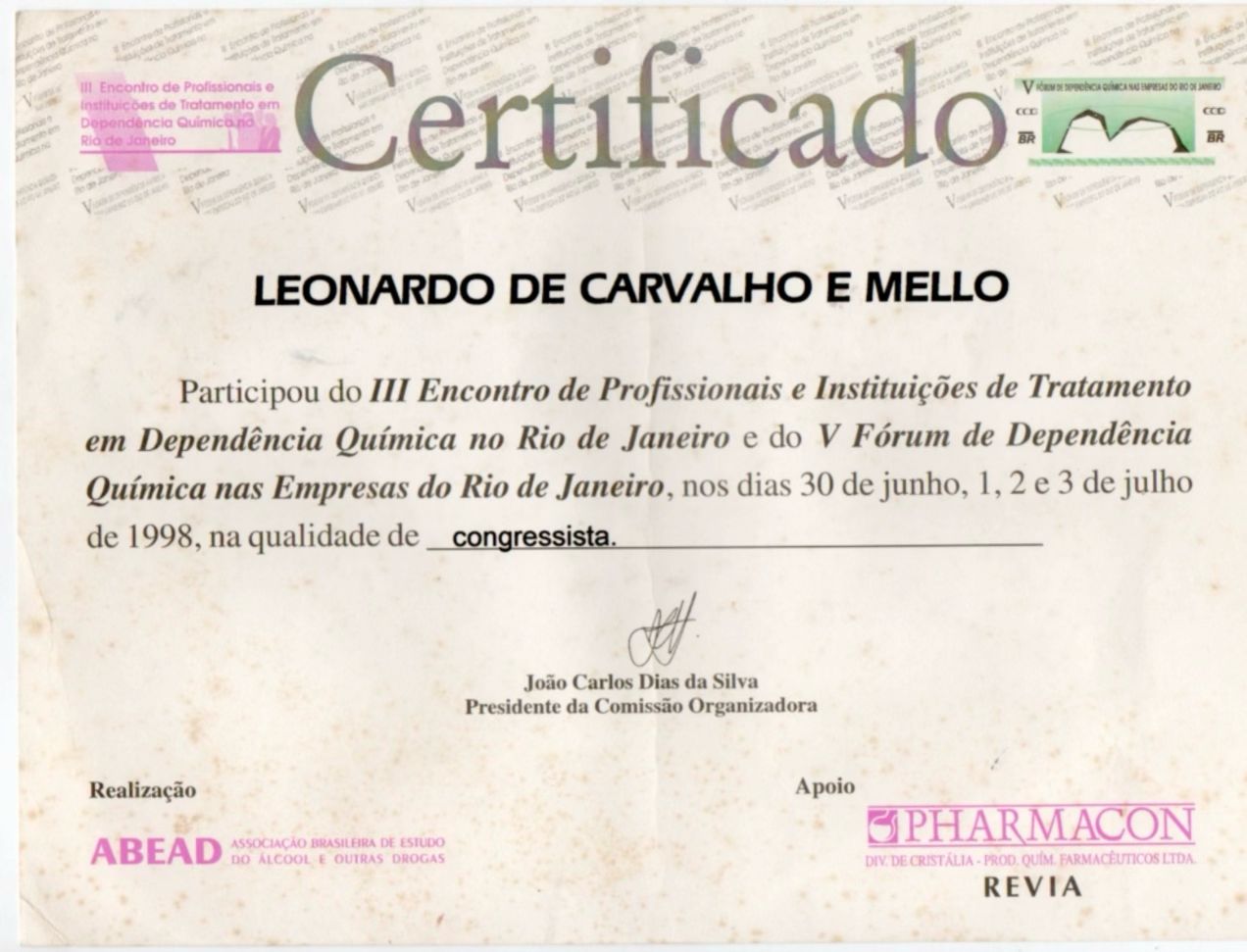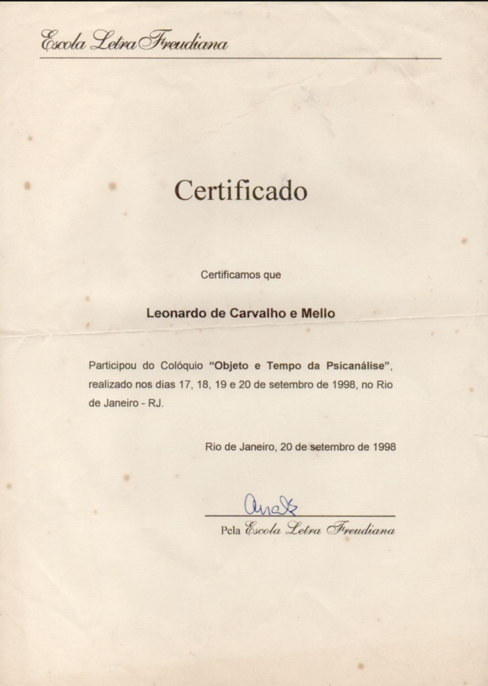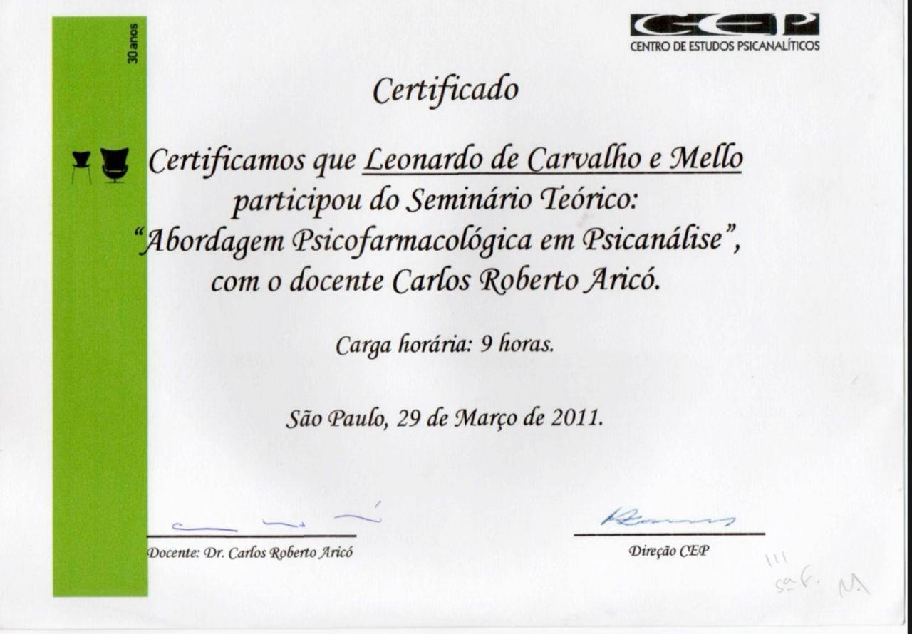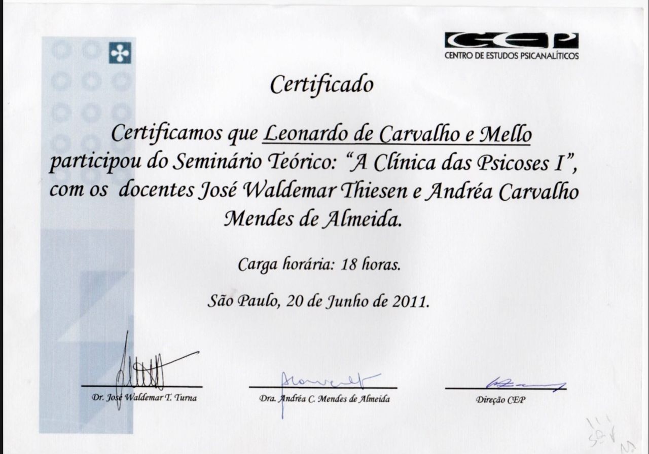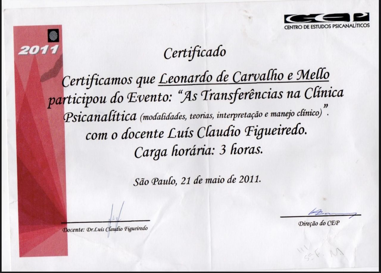 Membro associado da Sociedade de Psicanálise da Cidade do Rio de Janeiro SPCRJ