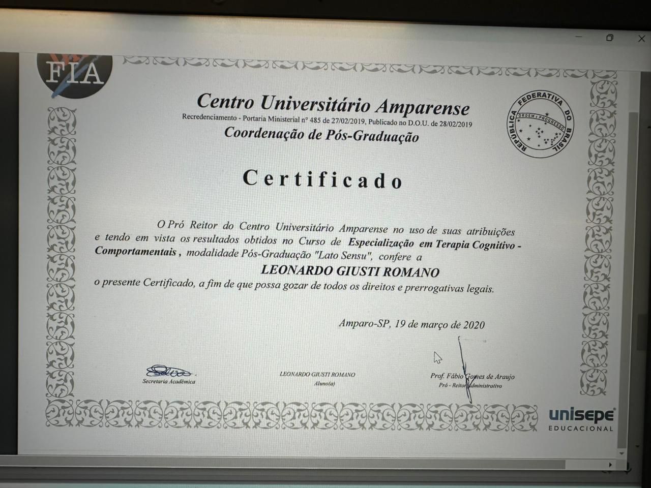 ESPECIALISTA EM TERAPIA COGNITIVO-COMPORTAMENTAL e FORMAÇÃO EM TERAPIA DOS ESQUEMAS