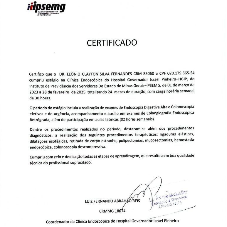 Cirurgião do Aparelho Digestivo pelo Hospital Governador Israel Pinheiro - IPSEMG de Belo Horizonte (RQE: 68.136)