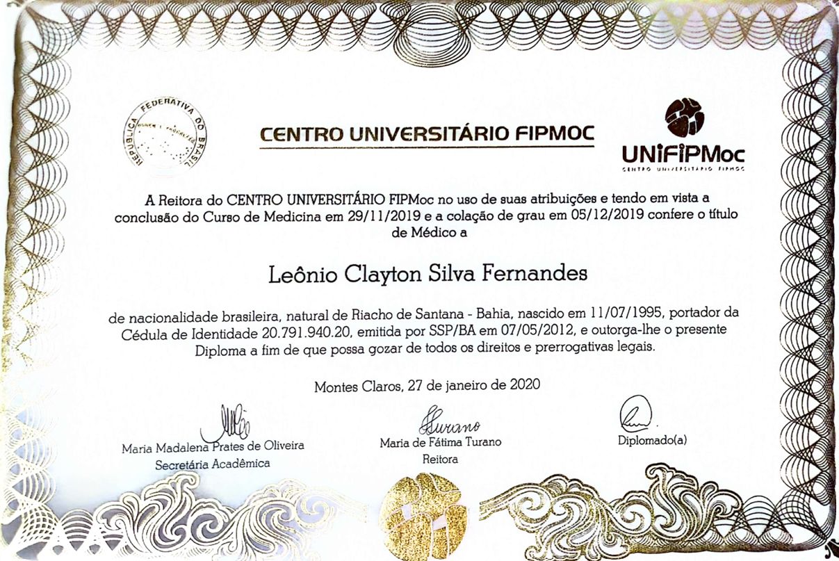 Médico formado em 2019 pelas Faculdades Integradas Pitágoras de Montes Claros (CRMMG 83.060)