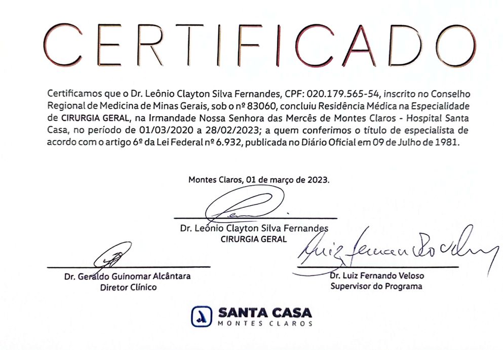 Cirurgião Geral pela Santa Casa de Montes Claros (RQE: 60.334)