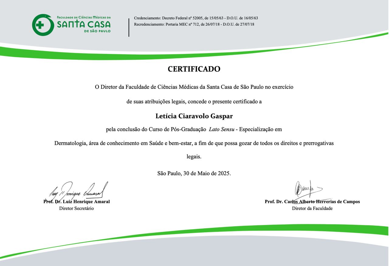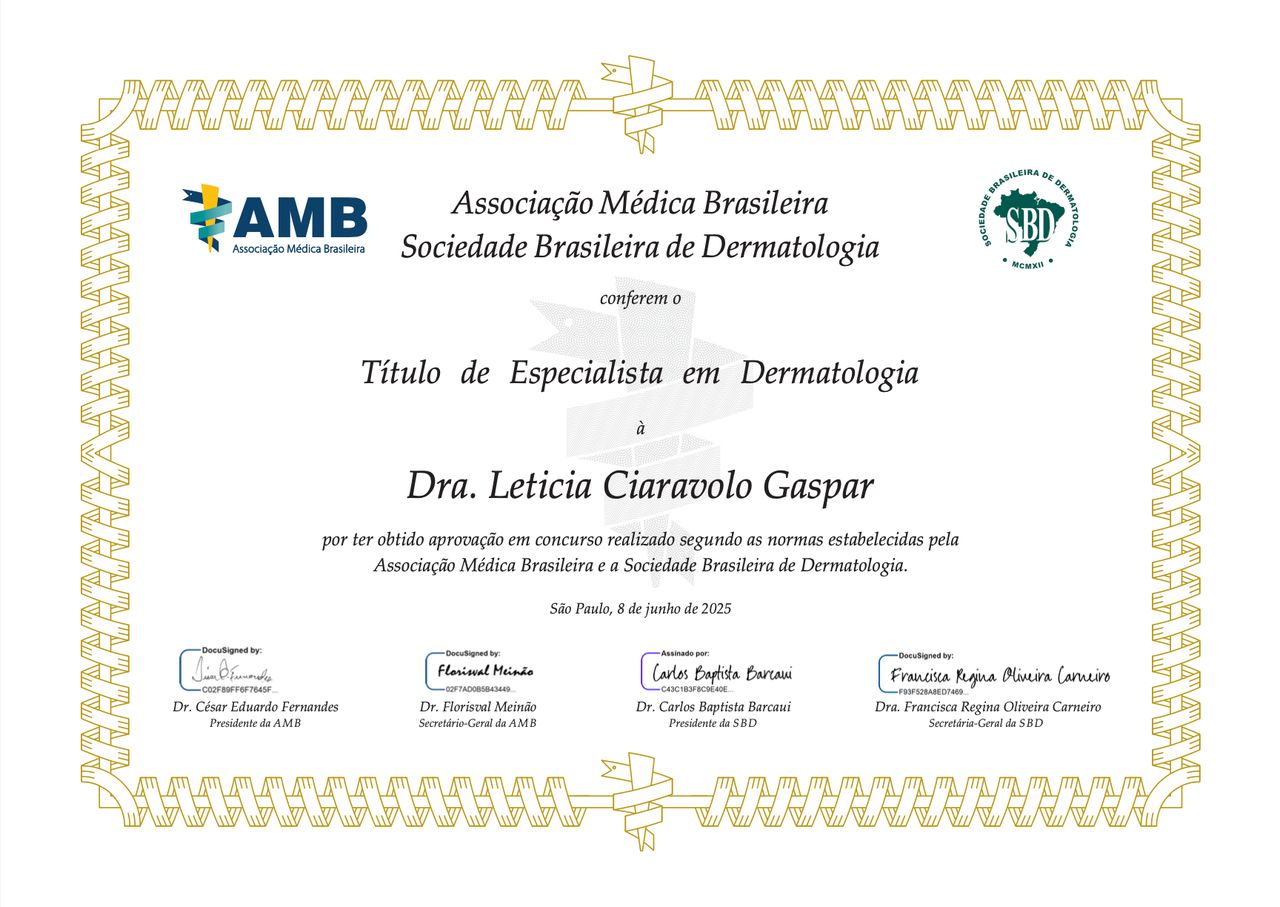 Sou médica dermatologista formada pela PUC-SP, com especialização pela Santa Casa de São Paulo e membro da Sociedade Brasileira de Dermatologia.