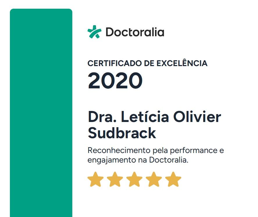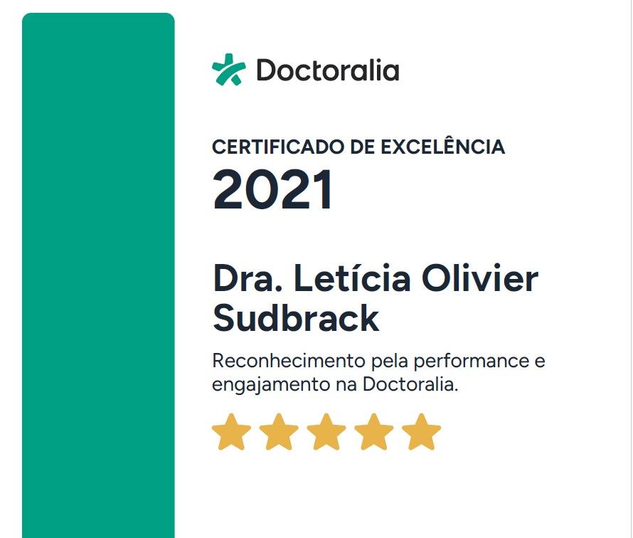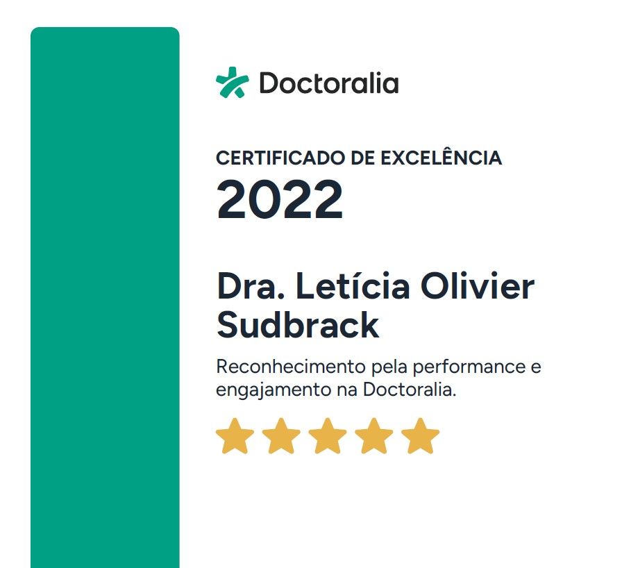 O que outros pacientes opinam sobre Letícia Olivier Sudbrack?Um total de 98 pacientes já deixou uma opinião honesta e real sobre Letícia Olivier Sudbrack, que tem uma avaliação média de 5 estrelas (de 5).