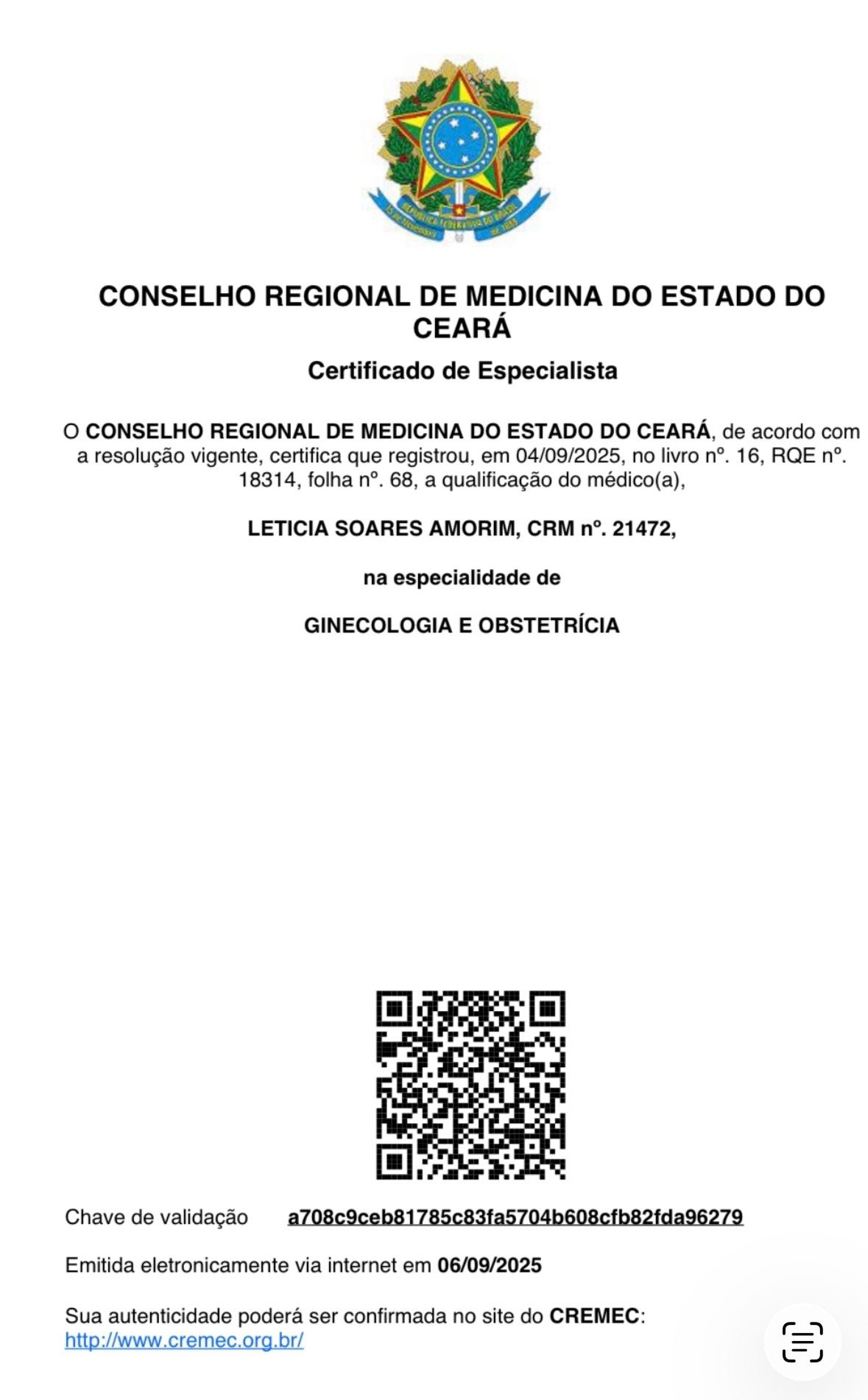 Número de registro: CRM CE 21472 - RQE Nº: 18314