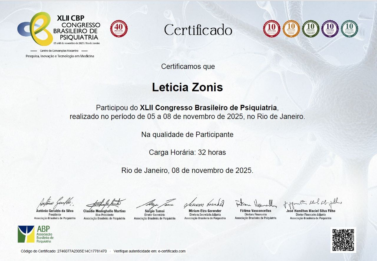 Tive a oportunidade de conhecer a Dra. Leticia anteriormente no atendimento clínico, e agora, iniciando o acompanhamento em psiquiatria, tudo o que eu já admirava em sua atuação foi ainda mais reforçado.