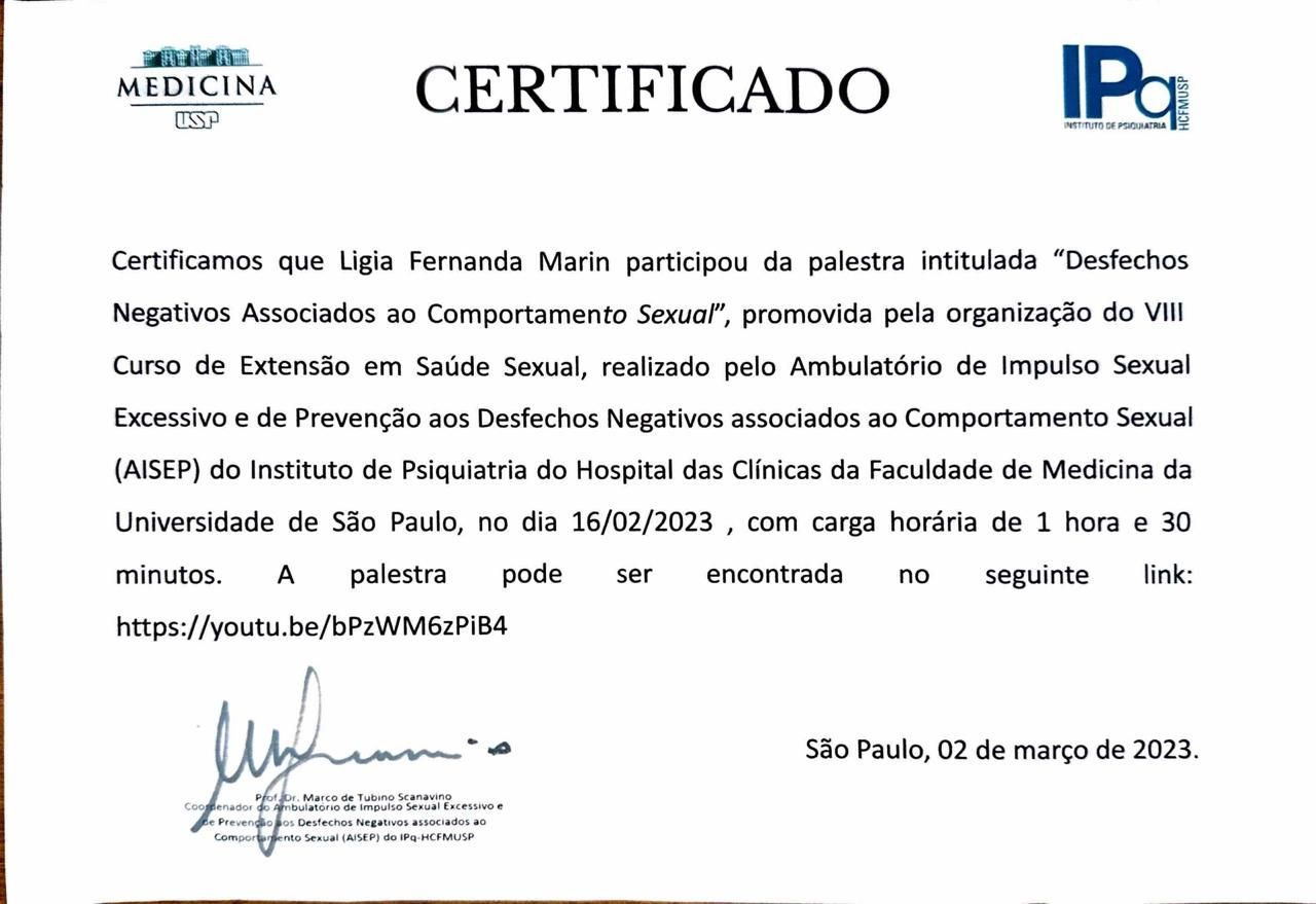 Quais são as principais especialidades de Ligia Marin?Ligia Marin é psicóloga, sexóloga. Te mostramos alguns dos serviços oferecidos pelo especialista graças à sua trajetória e vasta experiência: Anamnese psicológica, Atendimento em crise suicida, Atendimento psicológico à mulheres em situação de violência doméstica, Consulta de psicologia online, Consulta psicológica do adulto, Experiência Somática, Primeira consulta psicologia, Psicanálise, Psicoterapia, Retorno de consulta psicologia.