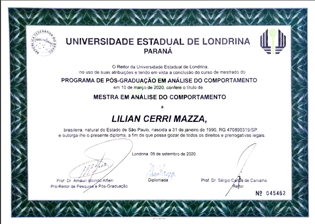 Sou formada em Psicologia, Mestre e Doutoranda em Análise do Comportamento pela UEL. Atualmente estou fazendo atendimento clínico pela modalidade online.