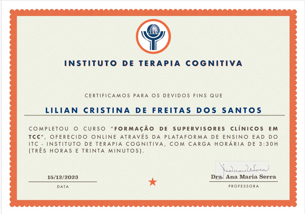 Olá, tudo bem? Seja muito bem-vindo(a)! Sou psicóloga clínica formada há mais de 20 anos pela FMU, onde também me especializei em Psicopedagogia. Ao longo da minha caminhada profissional também me especializei em Neuropsicologia pela Universidade São Judas Tadeu e fui me aprofundando em temas essenciais para o cuidado emocional, como Terapia Cognitivo Comportamental (TCC), formação em Terapia do Esquema, TDAH e Supervisão Clínica em TCC. Atualmente, continuo em constante aperfeiçoamento, com especializações em TCC pela PUC-RS e Terapia do Esquema pela Verbo Educacional.