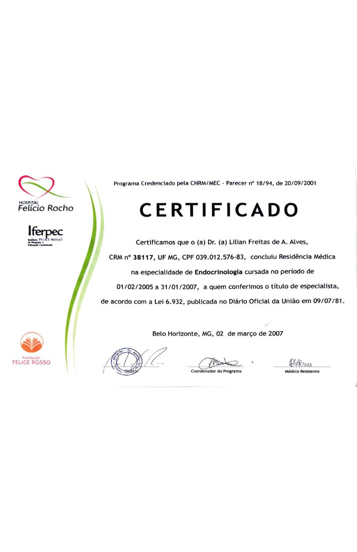 Sou médica endocrinologista, graduada em Medicina pela Universidade Federal de Minas Gerais (2002), com residência em Clínica Médica pelo Hospital João XXIII e em Endocrinologia e Metabologia pelo Hospital Felício Rocho. Possuo título de Mestre pela UFMG e atuo como endocrinologista no Hospital Madre Teresa, além de atendimentos em consultório.