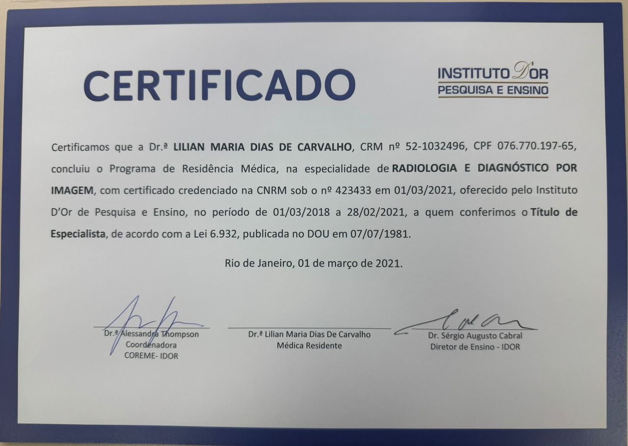 Número de registro: CRM RJ 1032496 - RQE nao encontrado para (RADIOLOGISTA)