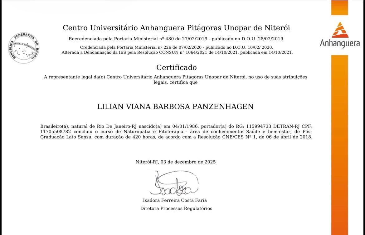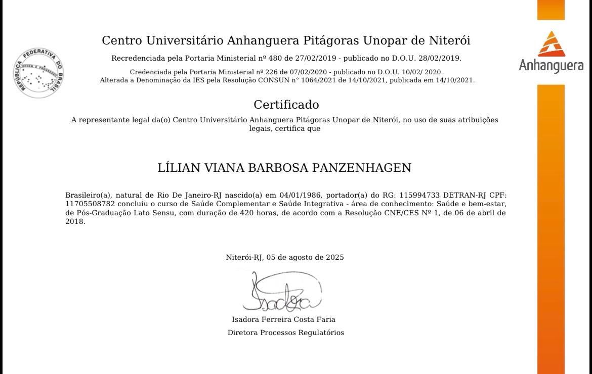 Quando poderia me consultar com Lílian Viana Barbosa Panzenhagen?Entre em contato diretamente com Lílian Viana Barbosa Panzenhagen para verificar sua disponibilidade.