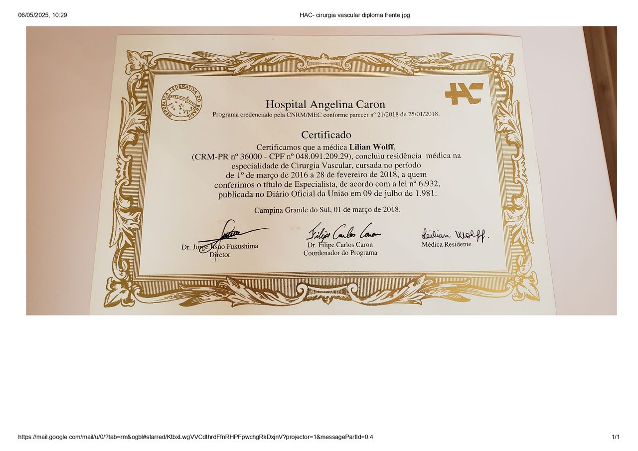 Em seguida, vieram duas residências médicas. A primeira em Cirurgia Geral e a segunda em Cirurgia Vascular, no Hospital Teresa Ramos (SC) / Hospital Angelina Caron (PR). Terminei em 2018.