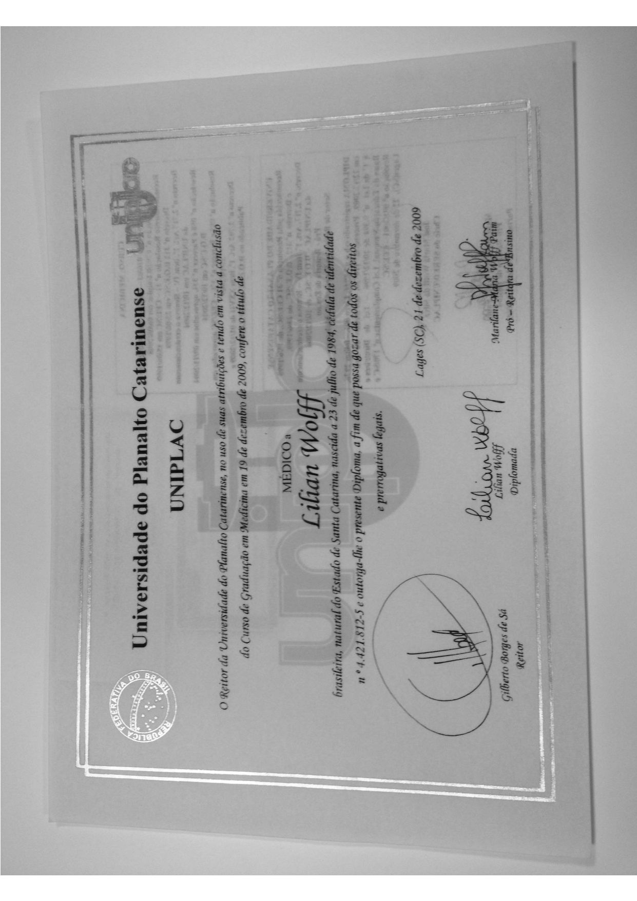 Minha trajetória iniciou com o Curso de Medicina na Universidade do Planalto Catarinense (UNIPLAC), concluído em 2009.