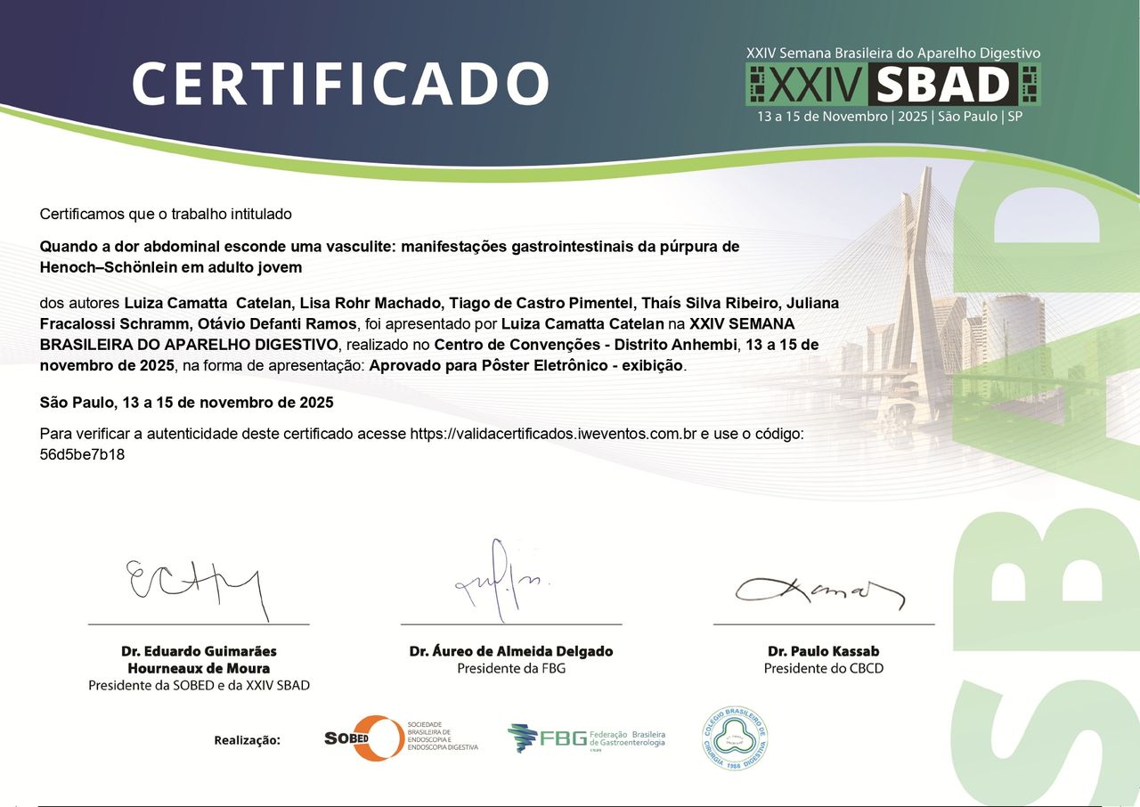 Sou médica gastroenterologista, com residência em Gastroenterologia pelo Hospital Universitário Cassiano Antônio Moraes (HUCAM/UFES), em Vitória – ES.