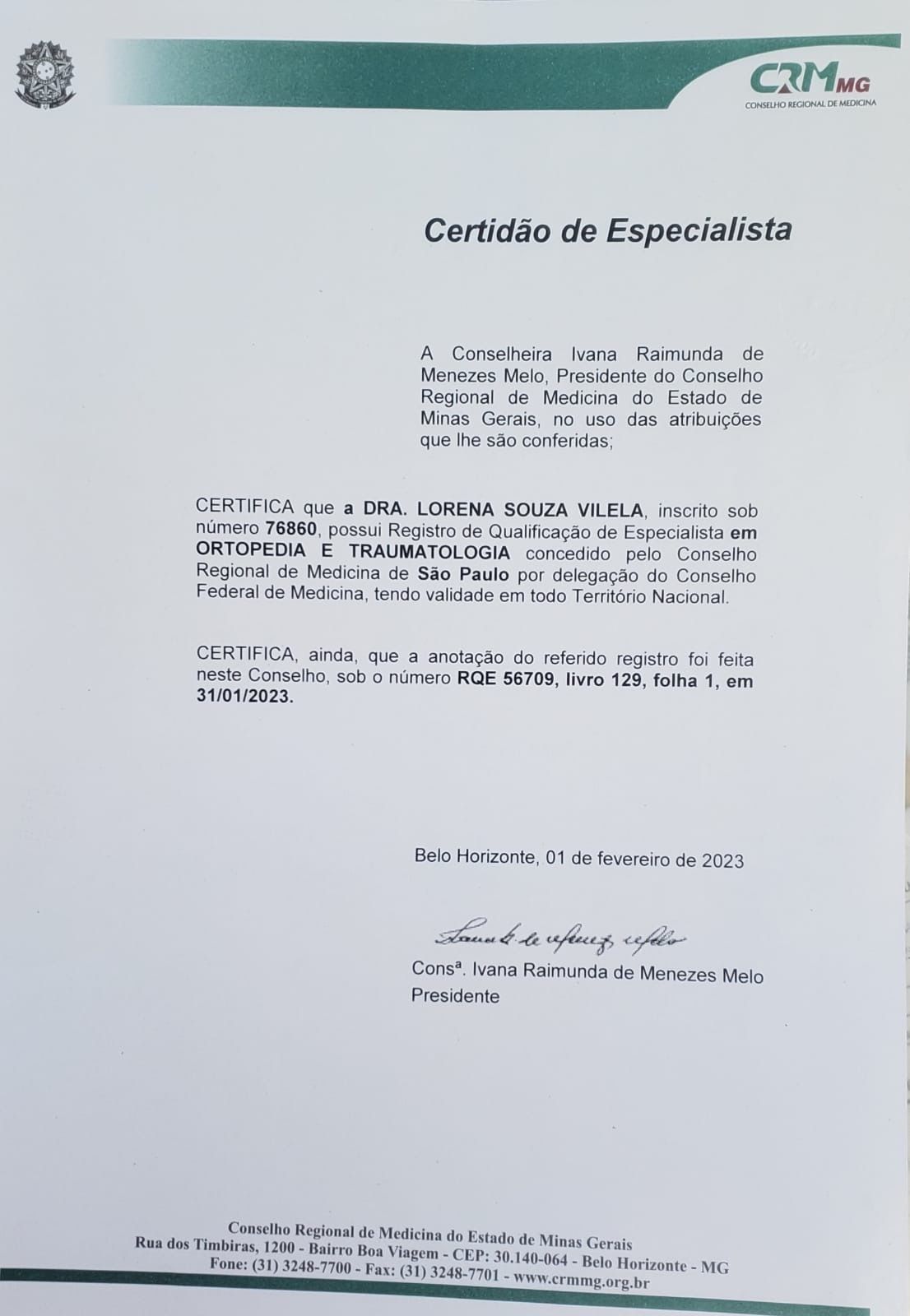 Número de registro: CRM MG 76860 - RQE Nº: 56709