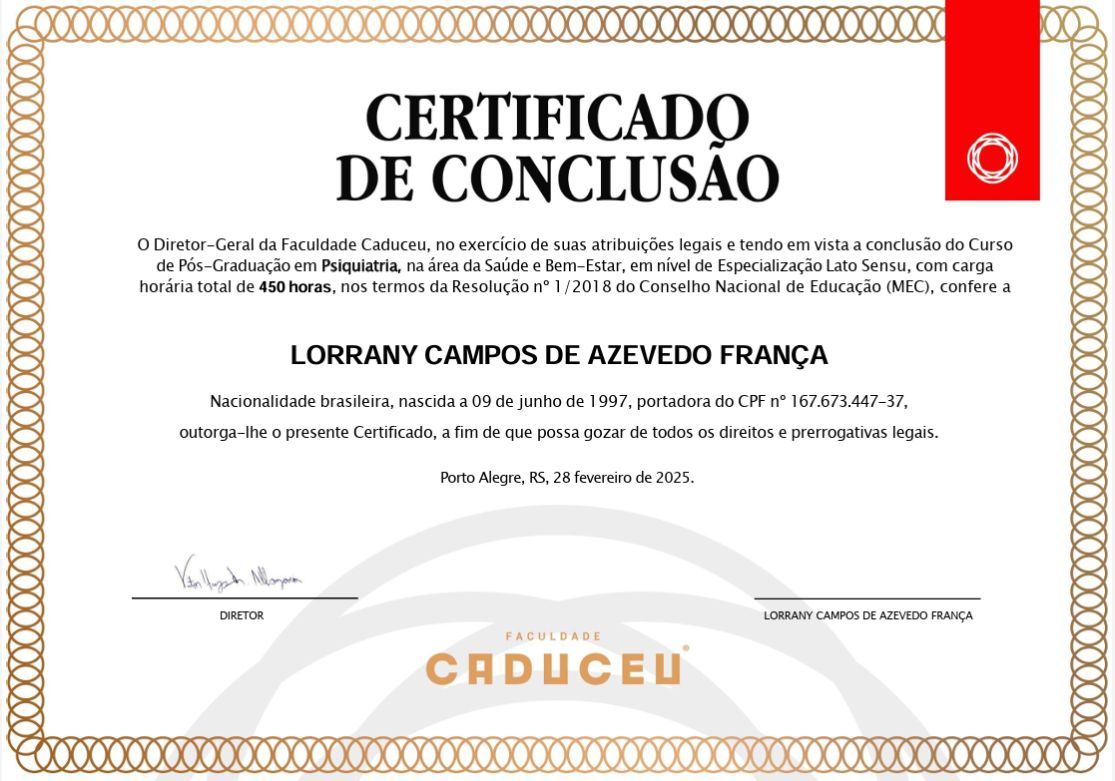 Posso passar por atendimento online com Lorrany França, sem ter que ir até o consultório?Sim, Lorrany França oferece atendimento online. Basta selecionar "Teleconsulta" ao agendar sua consulta e você poderá ver as datas e horários disponíveis.