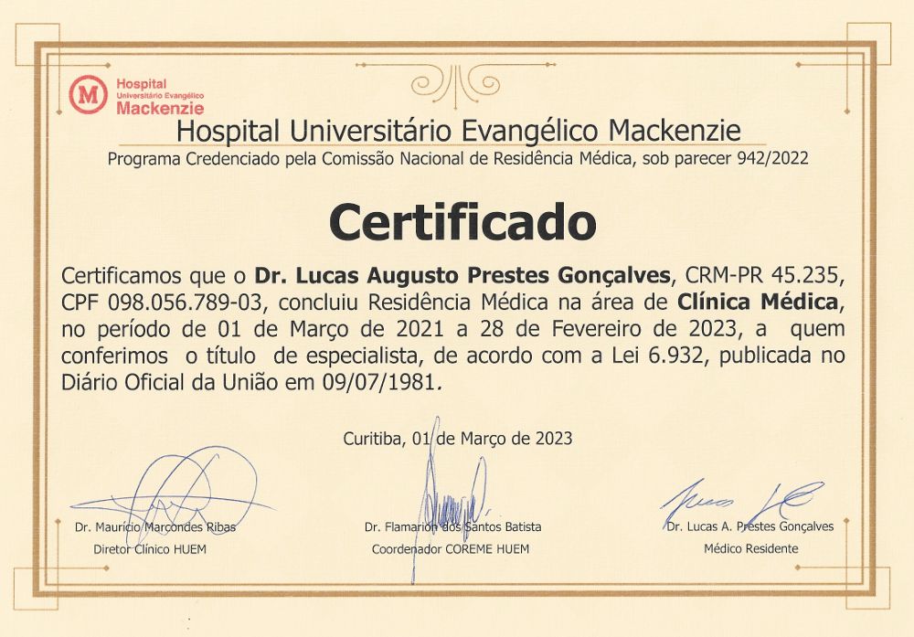 Você já passou por consulta com Dr. Lucas Augusto Prestes Gonçalves .? Conte aqui como foi. Outros pacientes vão te agradecer por ajudá-los a escolher o melhor especialista.