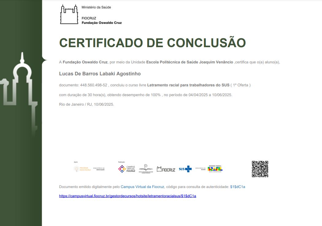 Acredito que, na área da saúde, a formação continuada é de extrema importância, de modo que, após a graduação busquei ampliar meus conhecimentos.