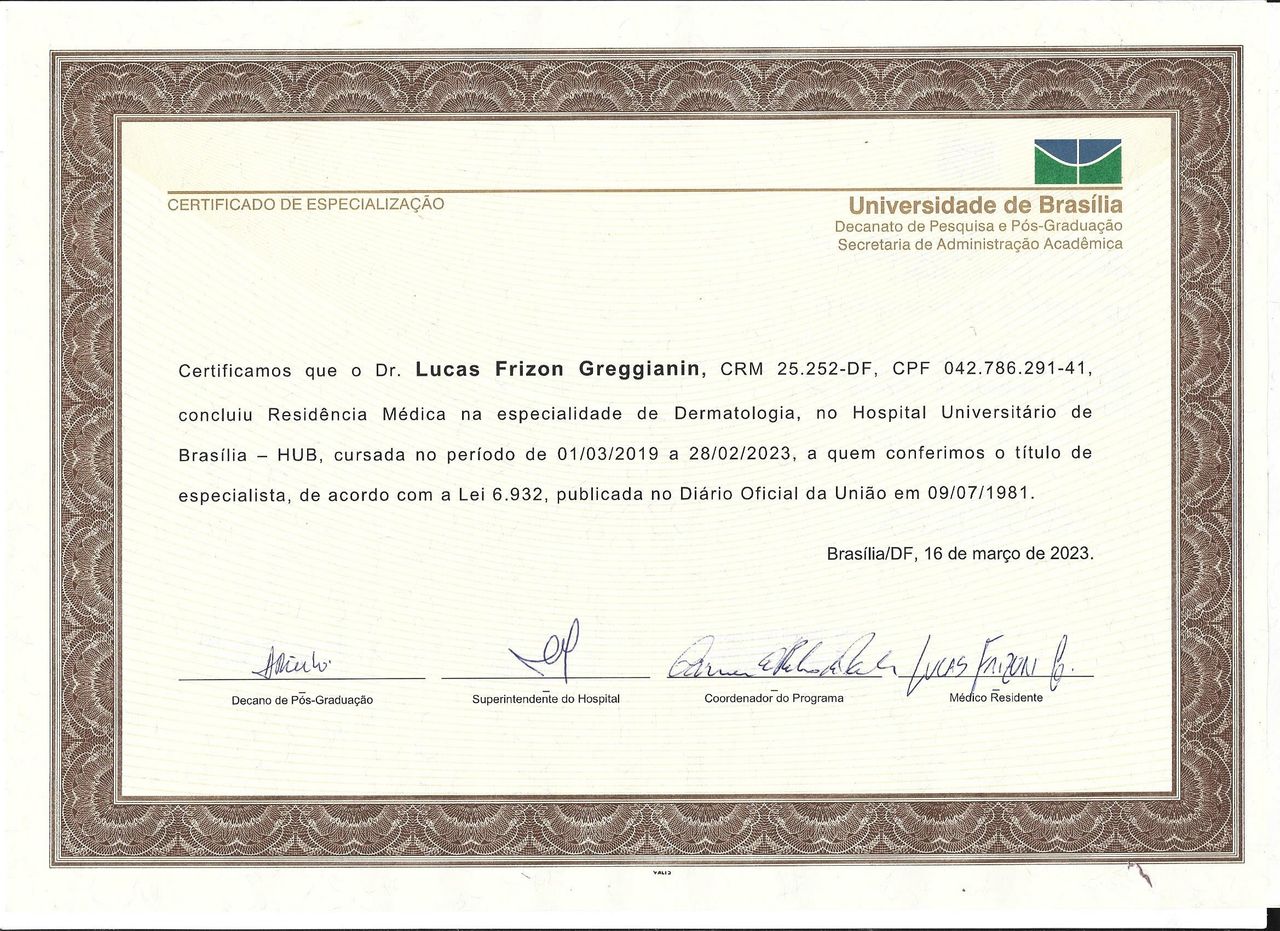 Olá, sou o Dr. Lucas Frizon Greggianin, médico dermatologista (CRM 25252 | RQE 21917).