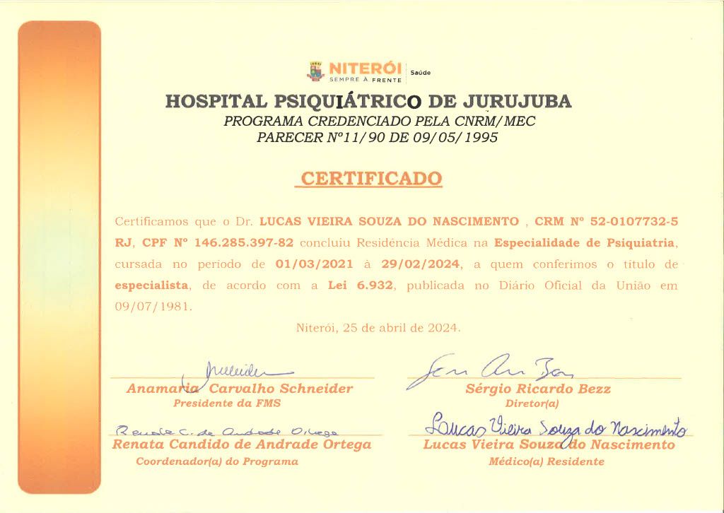 Número de registro: CRM RJ 1077325 RQE Nº: 52753