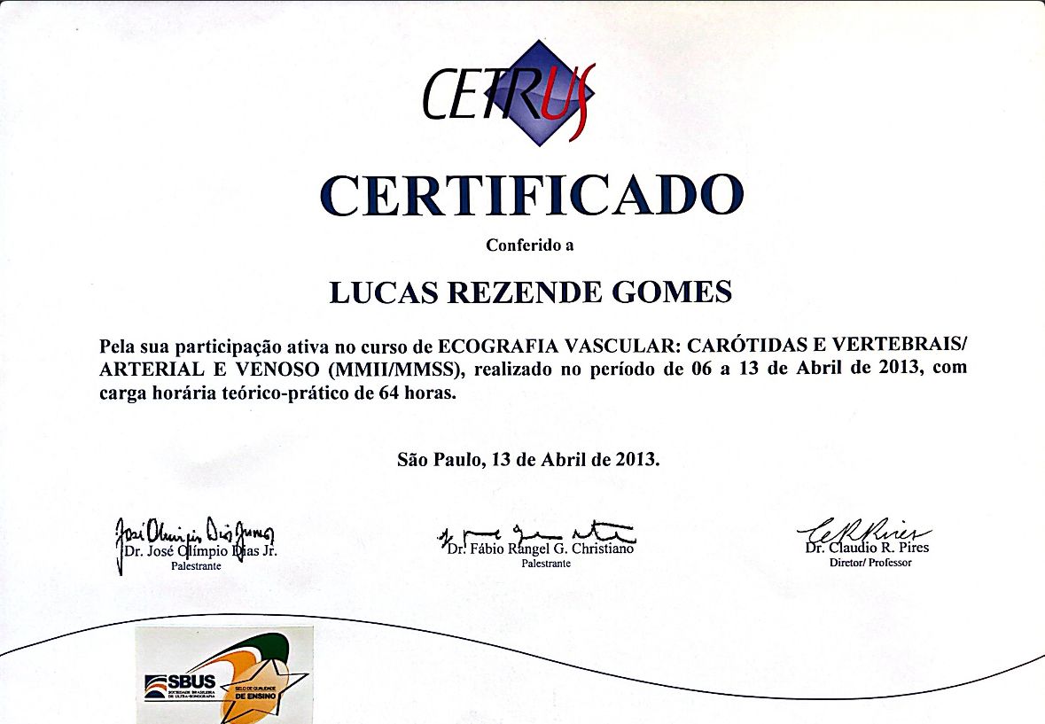 Quais são as principais especialidades de Lucas Rezende?Lucas Rezende é angiologista, cirurgião vascular. Te mostramos alguns dos serviços oferecidos pelo especialista graças à sua trajetória e vasta experiência: Crioescleroterapia, Primeira consulta Angiologia, Retorno de consultas Angiologia, Escleroterapia com espuma, Escleroterapia, Primeira consulta Cirurgia Vascular, Eco Doppler, Laser de vasos, Tratamento de varizes com laser, Tratamento de varizes por espuma densa.
