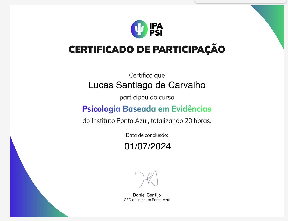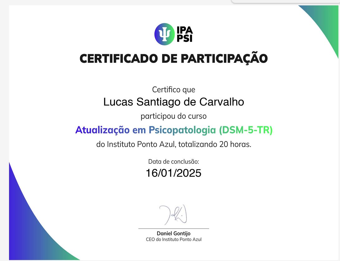 • Lucas Santiago de Carvalho - Psicologo • Atendimento Online em Psicoterapia •