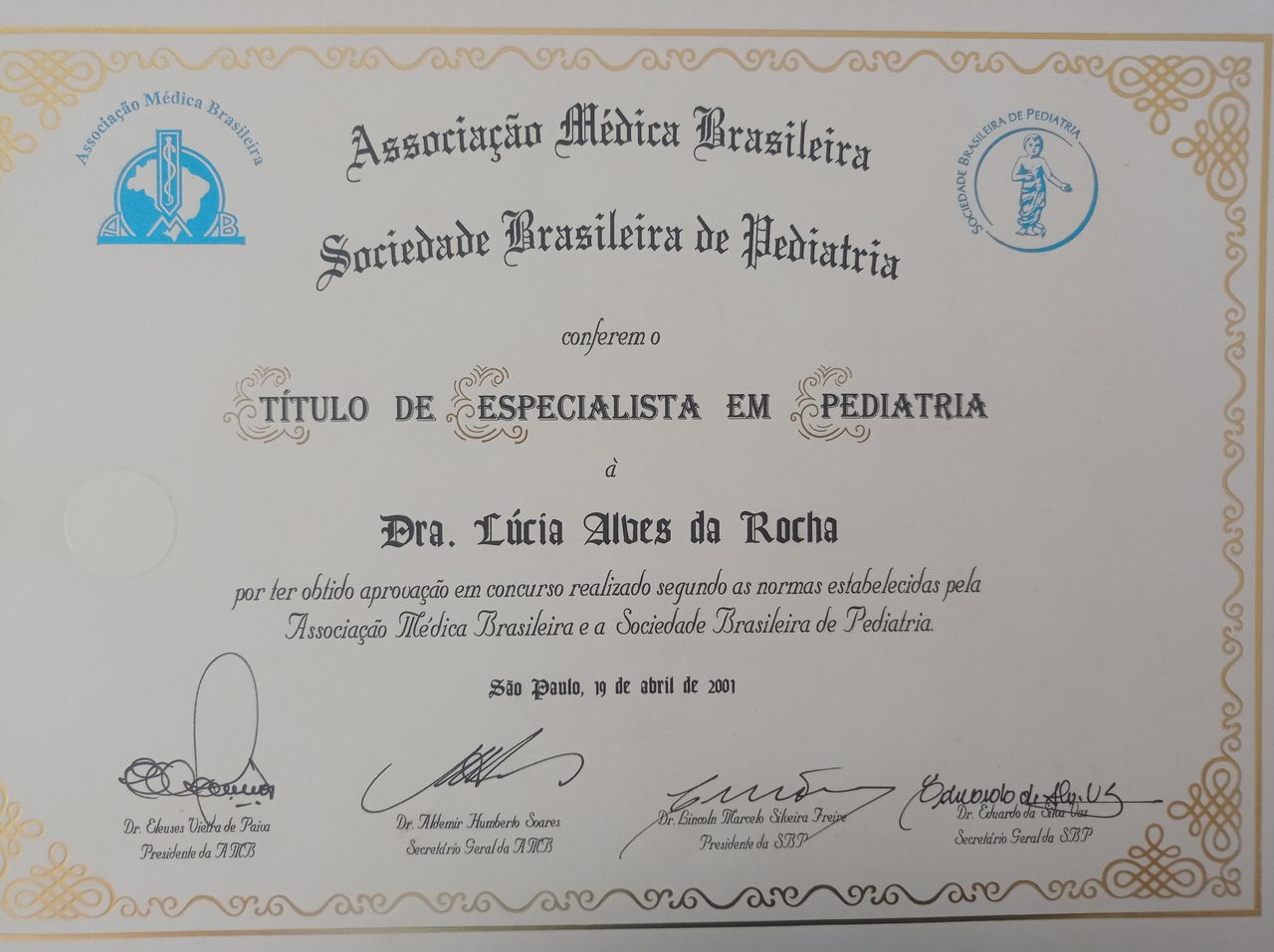 Quais são as principais especialidades de Lucia Alves da Rocha?Lucia Alves da Rocha é pediatra. Te mostramos alguns dos serviços oferecidos pelo especialista graças à sua trajetória e vasta experiência: Teleconsulta, Primeira consulta Pediatria, Consulta pediatria.