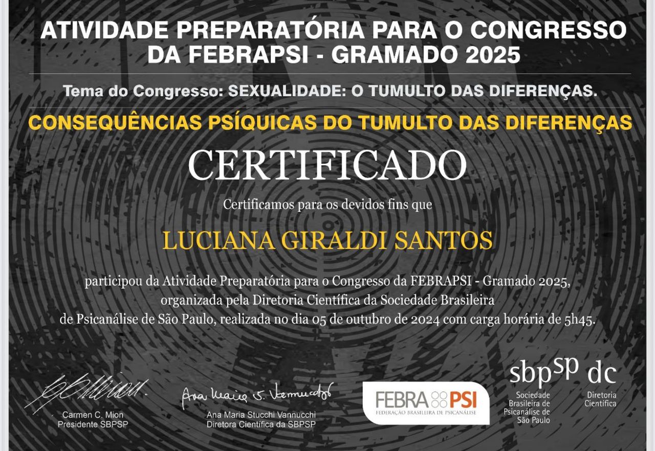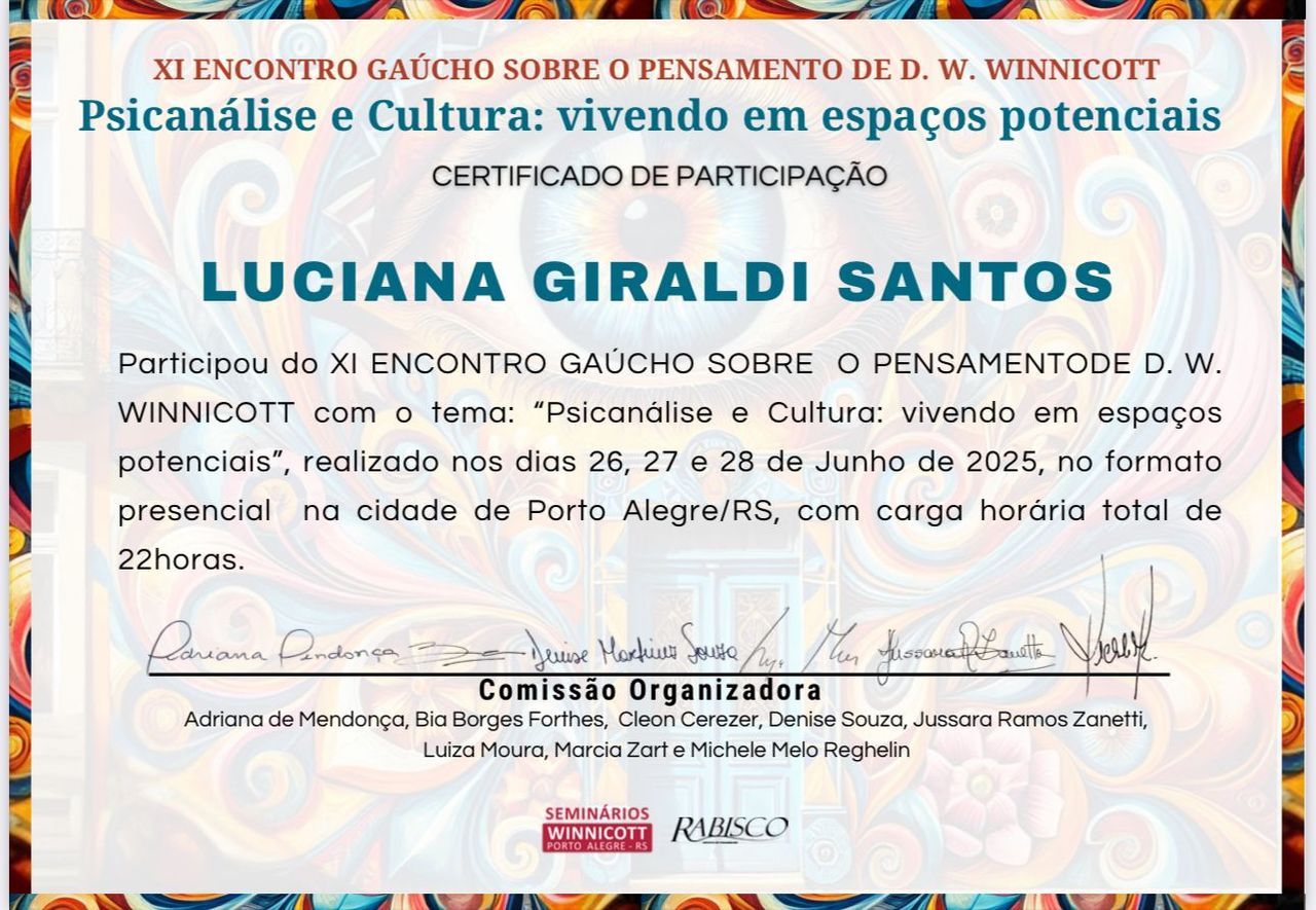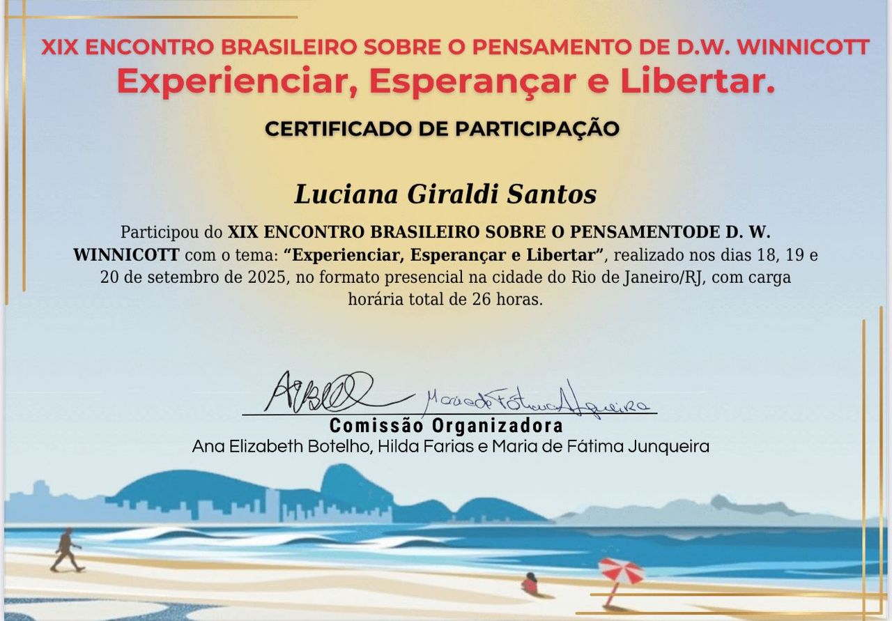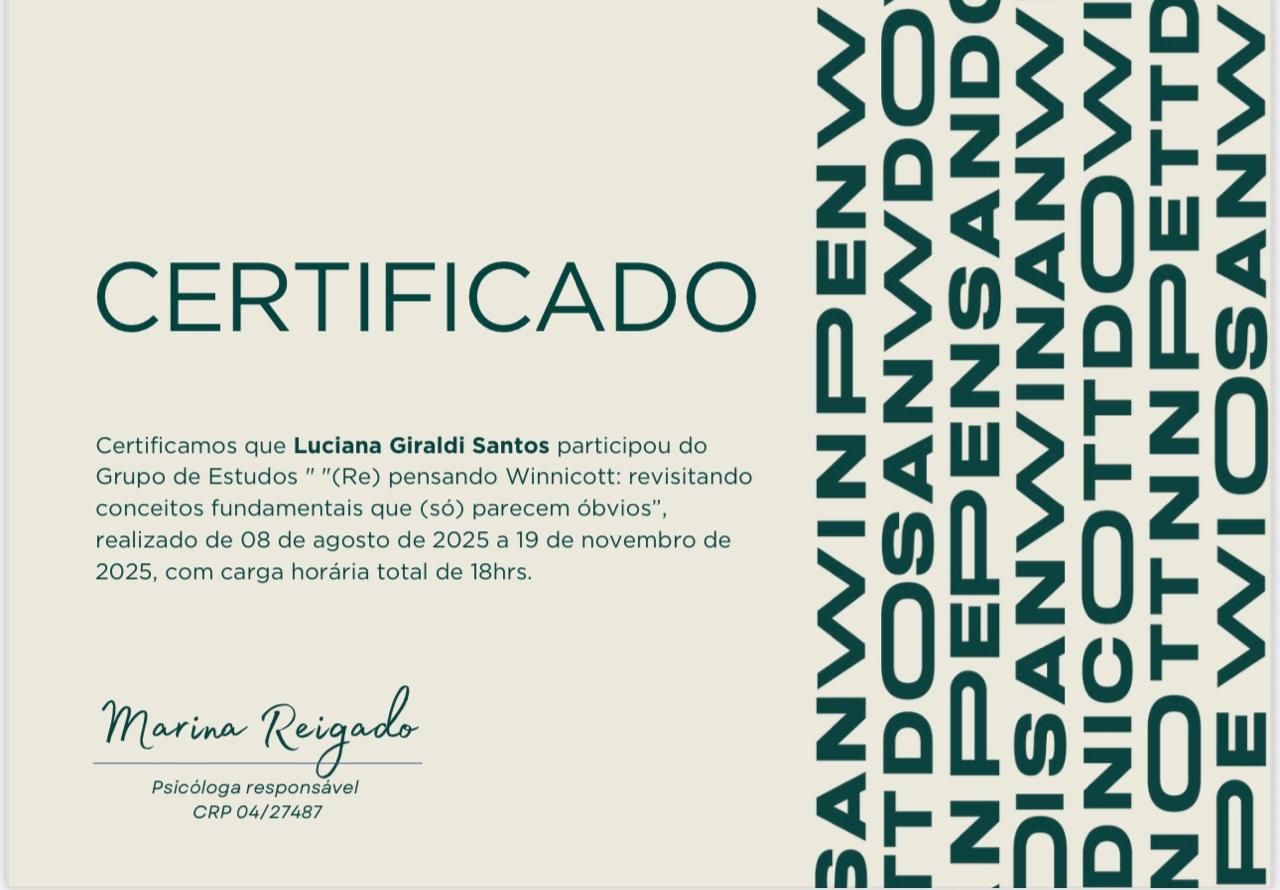 Sou Luciana Giraldi, psicóloga clínica e psicanalista, especialista em Psicanálise Winnicottiana.