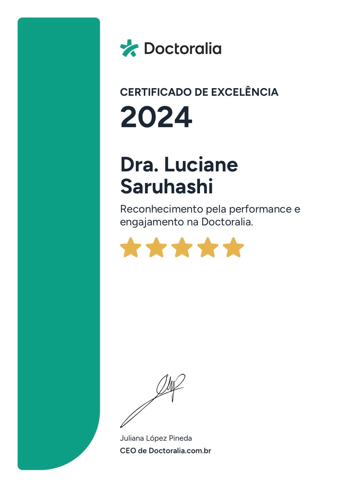 O que outros pacientes opinam sobre Luciane Saruhashi?Um total de 975 pacientes já deixou uma opinião honesta e real sobre Luciane Saruhashi, que tem uma avaliação média de 5 estrelas (de 5).