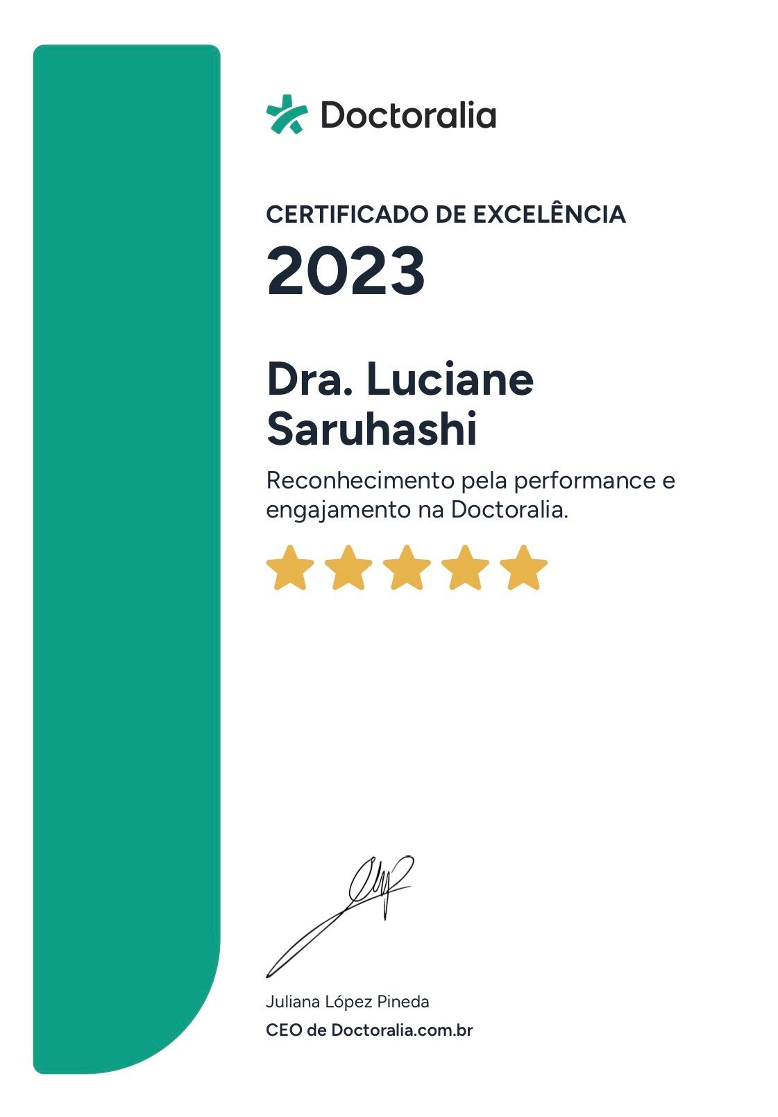 Quando poderia me consultar com Luciane Saruhashi?Luciane Saruhashi costuma ter horários disponíveis dentro da mesma semana ou para a semana seguinte. Verifique o calendário: você verá o primeiro horário disponível, atualizado em tempo real. Caso o horário sugerido não funcione para você, verifique outras datas. Agendar uma consulta é sempre imediato e gratuito.