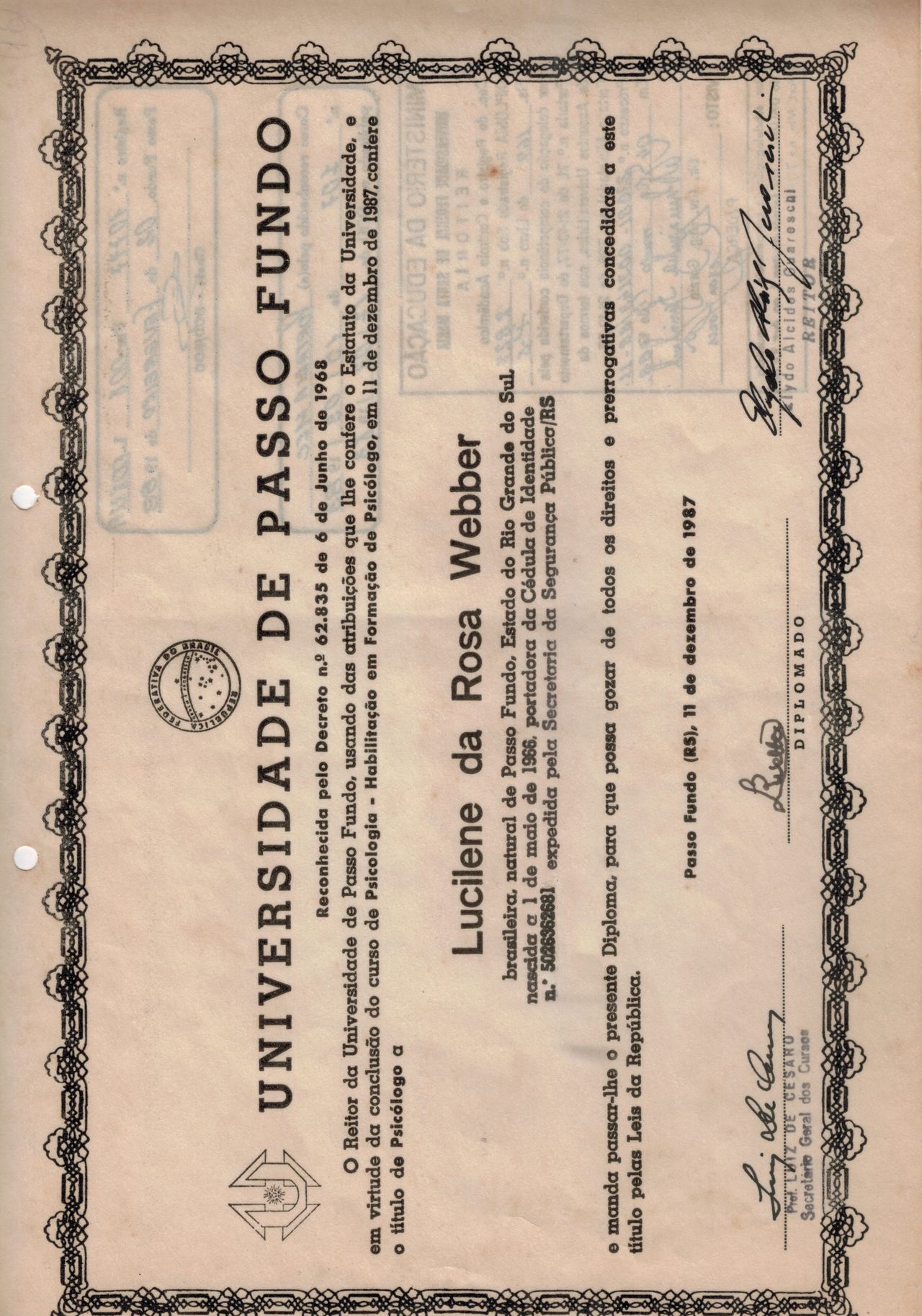 Sou Psicóloga Clínica, formada em 1987 pela Universidade de Passo Fundo (UPF-RS).