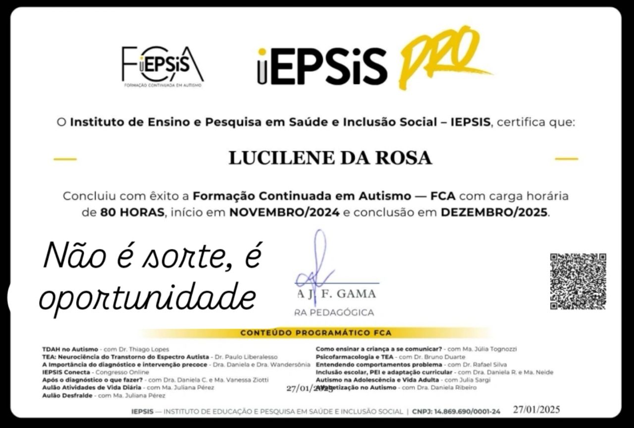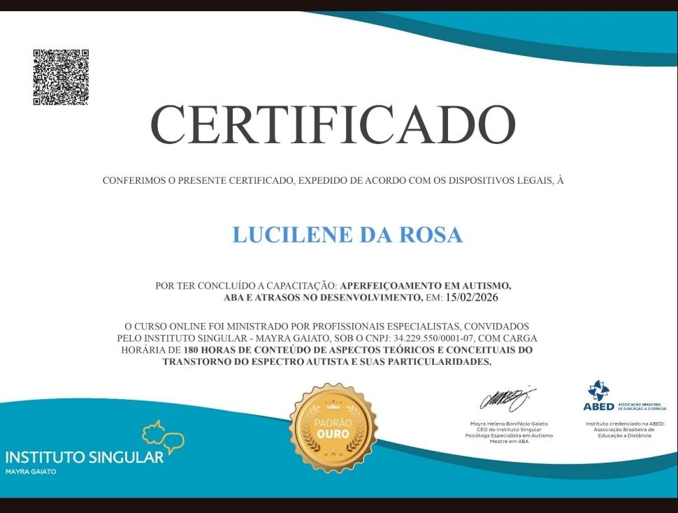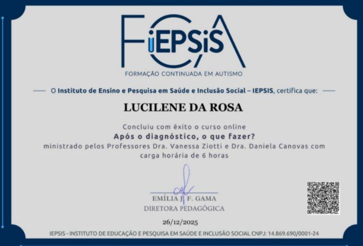 Sou grata pela oportunidade de ser terapeuta de seu filho Lorraine, essa criança linda, cheia de ideias e de preferências, temos desafios pela frente, obrigada por aceitar as orientações terapêuticas e colocá-las em prática, na medida do possível !! Conte comigo