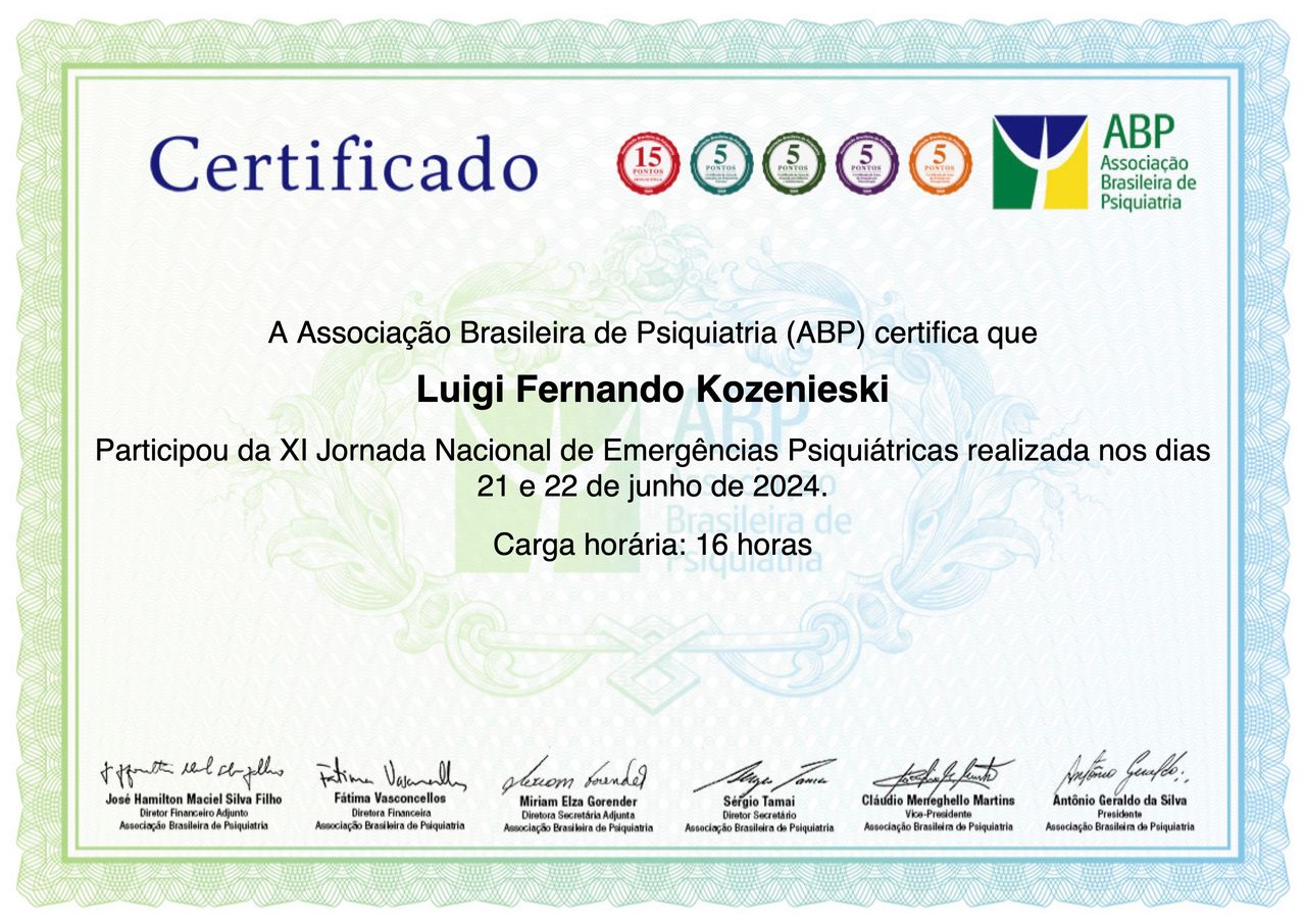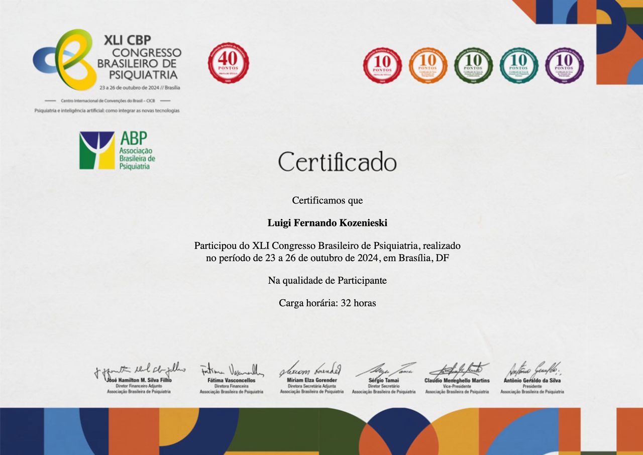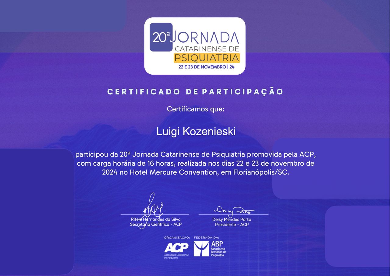 Número de registro: CRM SC 24998 RQE 25567 - Psiquiatra