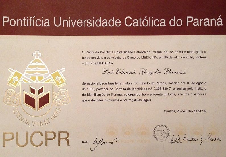 Médico graduado pela Pontifícia Universidade Católica do Paraná. Residência médica em Oftalmologia no Hospital Universitário Evangélico Mackenzie, em Curitiba. Programa de subespecialização (fellow) na área de Glaucoma no Médicos de Olhos, em Curitiba. Experiente em cirurgias oftalmológicas para catarata e controle de glaucoma, e cirurgias da superfície ocular.