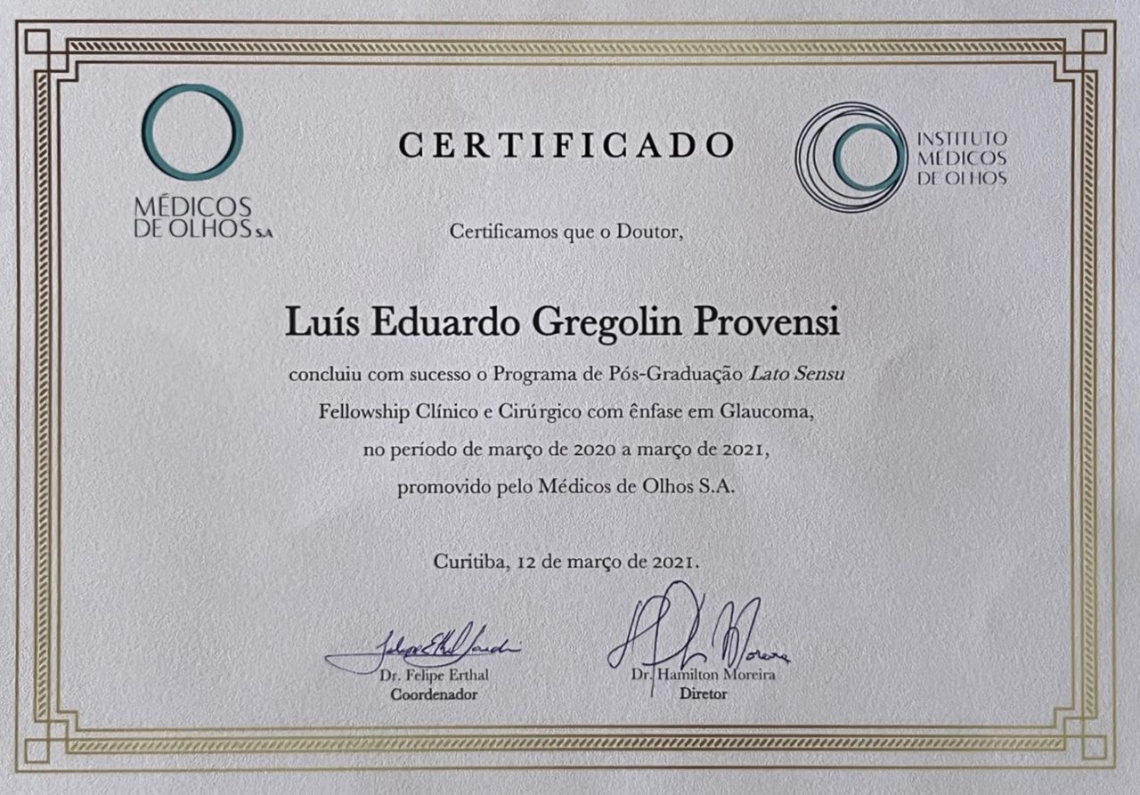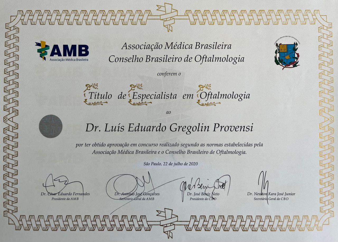 Quais são as principais especialidades de Luís Eduardo G. Provensi?Luís Eduardo G. Provensi é oftalmologista. Te mostramos alguns dos serviços oferecidos pelo especialista graças à sua trajetória e vasta experiência: Consulta Oftalmologia, Cirurgia de catarata, Cirurgia Do Pterigio, Gonioscopia, Mapeamento de retina, Cirurgia de Glaucoma, Exames para glaucoma, Consulta especializada de glaucoma, Teleconsulta.