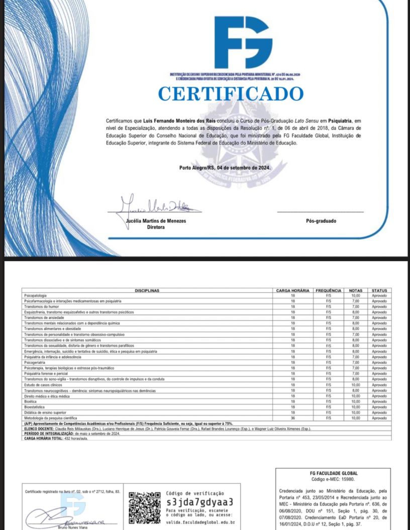 Sempre falam que Pesiquiatria é frio . Passei por dois e realmente é !Mais com Dr Luís Fernando M.Reis foi bem diferente me senti acolhida e confortável.