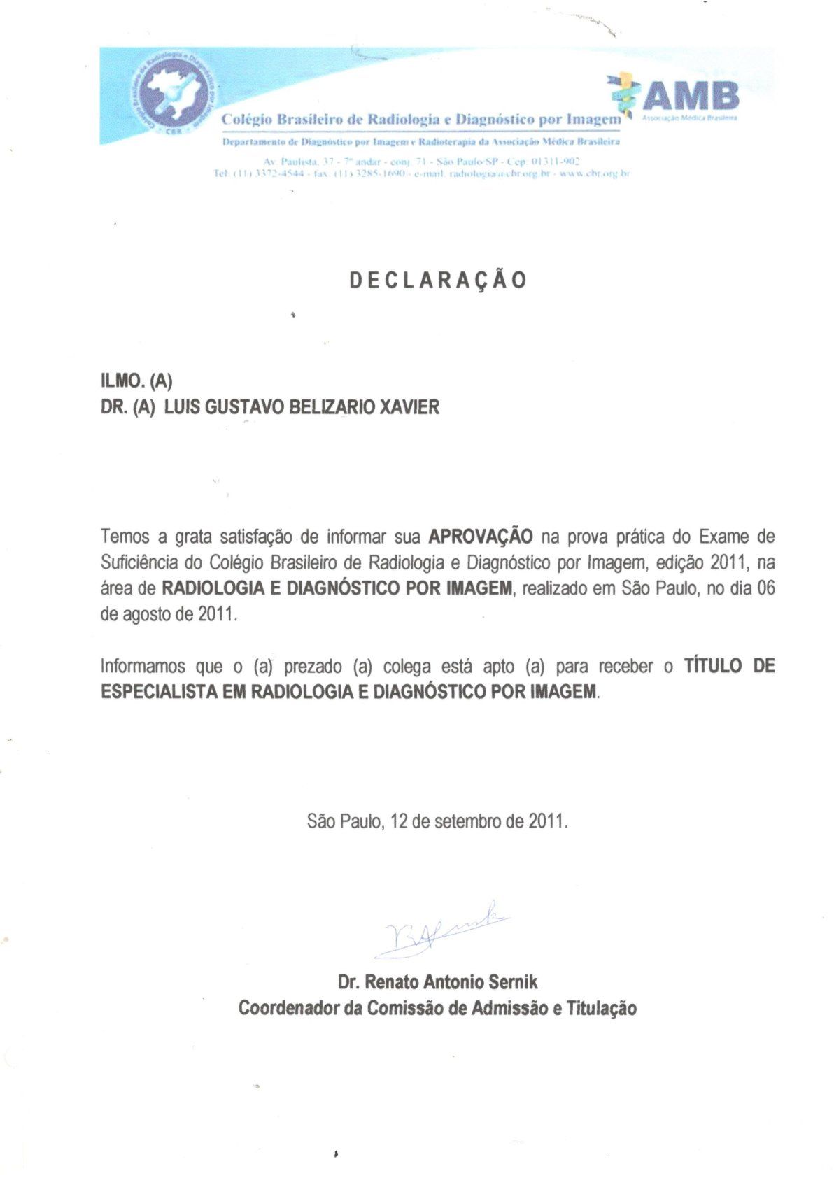 Quais são as principais especialidades de Luis Gustavo Belizario Xavier?Luis Gustavo Belizario Xavier é radiologista, especialista em diagnóstico por imagem. Te mostramos alguns dos serviços oferecidos pelo especialista graças à sua trajetória e vasta experiência: Ultrassonografia abdômen total, Ecografia de abdome superior, Ecografia de aparelho urinário, Ultrassonografia de articulações (por lado), Ultrassom do joelho, Ultrassonografia tornozelo, Ultrassonografia de bolsa escrotal com doppler colorido, Ultrassonografia de próstata via abdominal, Ultrassonografia pélvica via abdominal, Ecografia de parede abdominal.