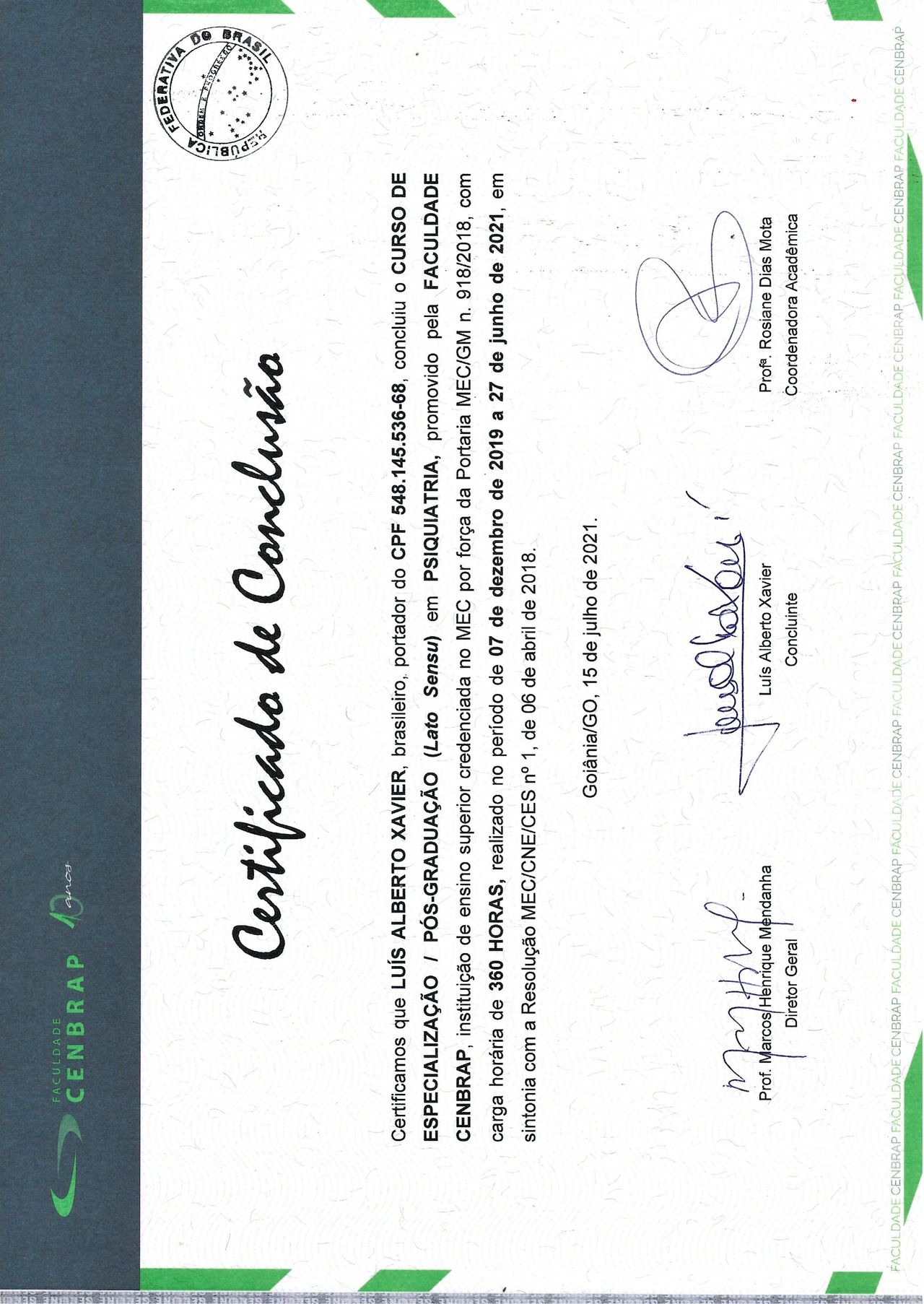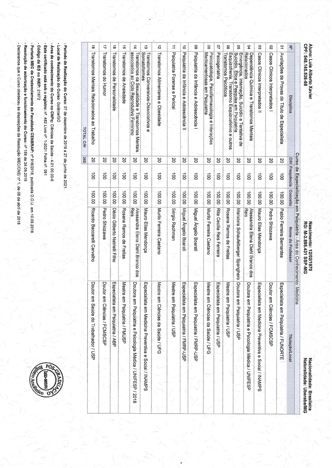 Número de registro: CRM MG 39132 RQE Psiquiatria (não encontrado)