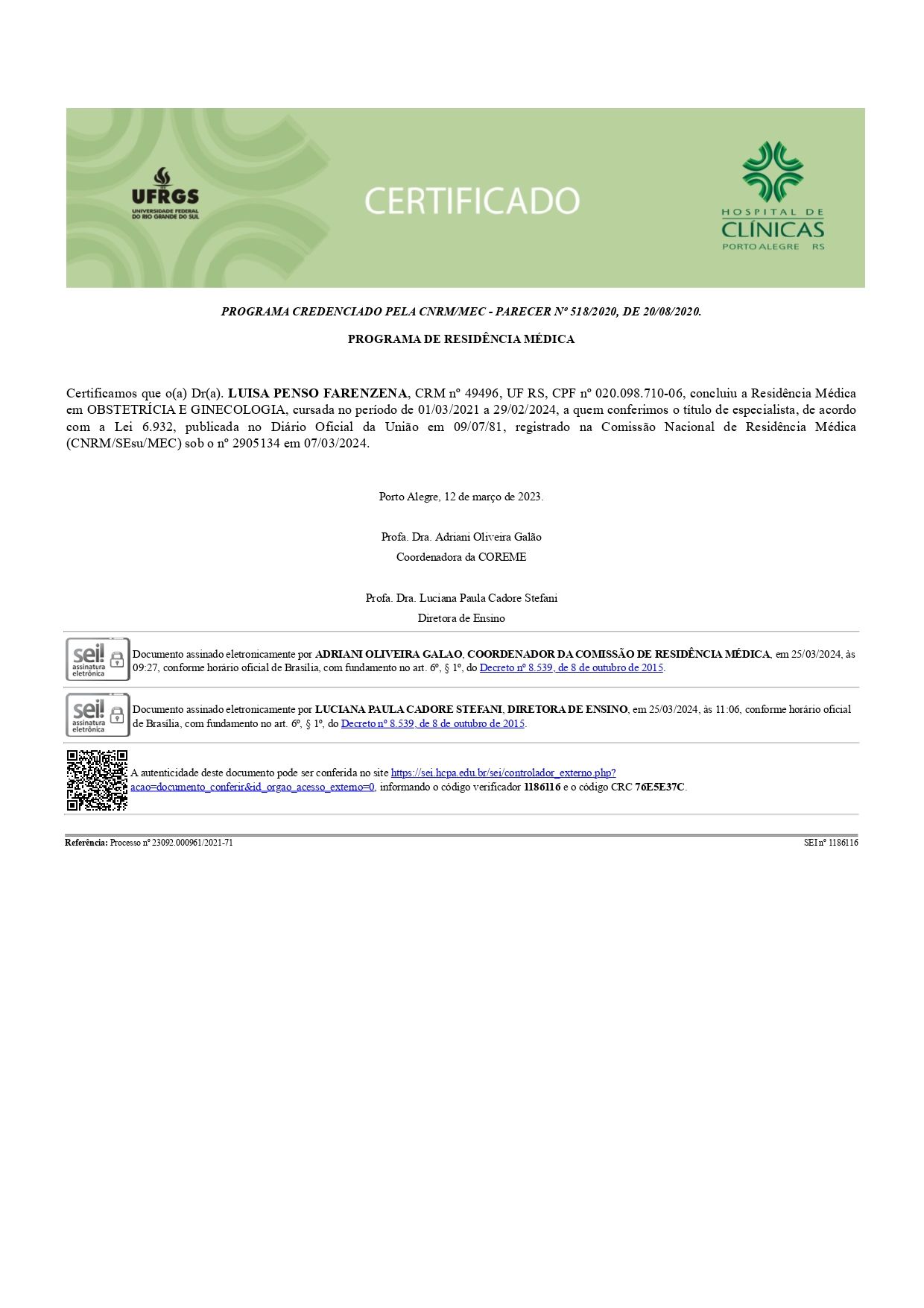 Número de registro: CRM RS 49496 RQE 44321