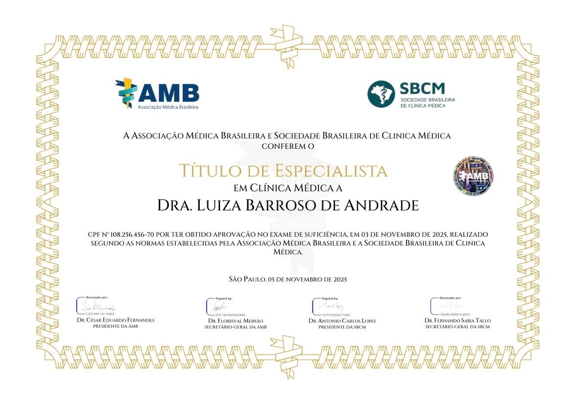 Você já passou por consulta com Dra. Luiza Barroso De Andrade? Conte aqui como foi. Outros pacientes vão te agradecer por ajudá-los a escolher o melhor especialista.