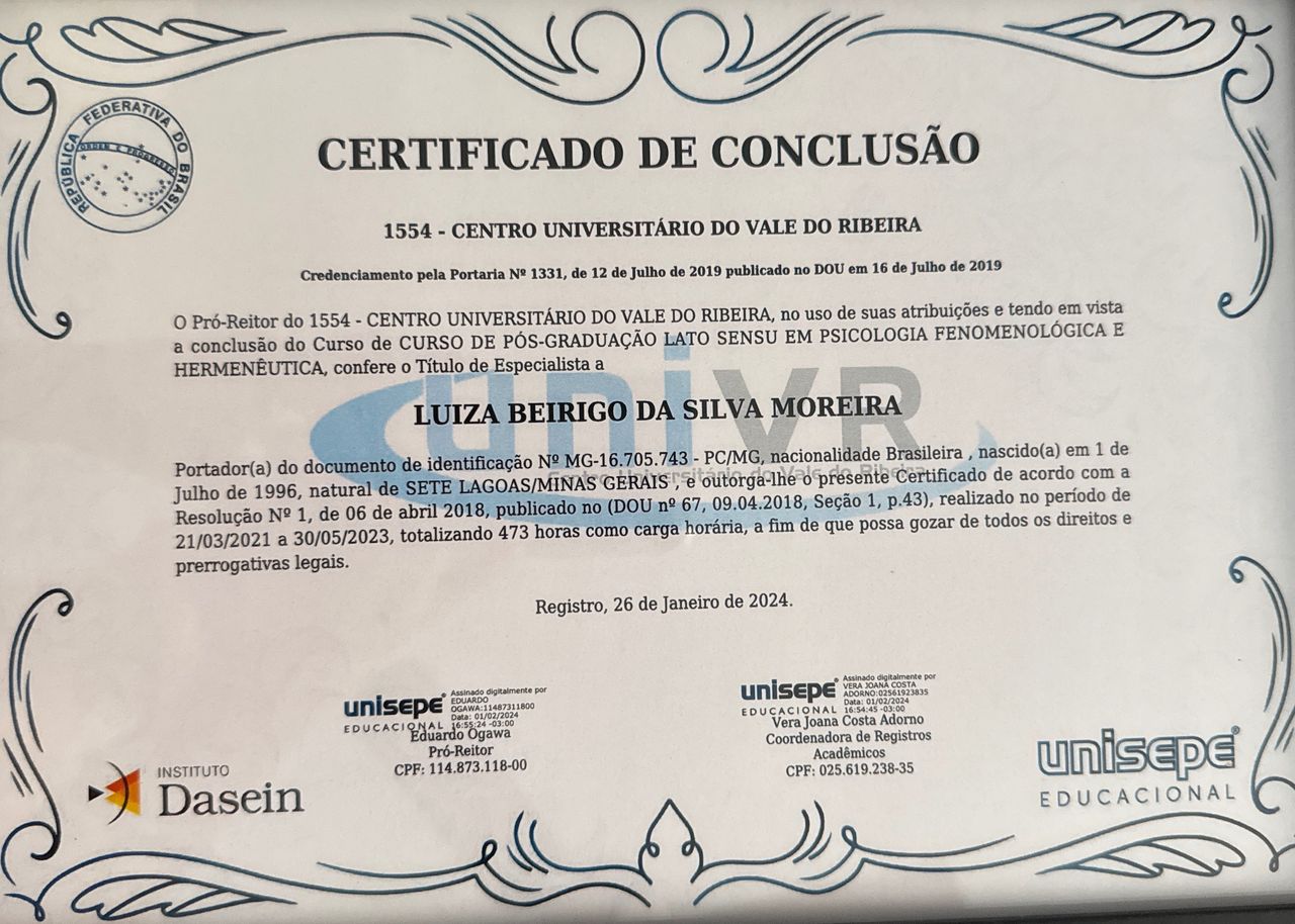 Minha proposta terapêutica valoriza o cuidado humano, a escuta empática e uma comunicação clara. Acredito que cada pessoa traz consigo uma história única, e minha missão é caminhar junto no processo de autoconhecimento, crescimento e superação.